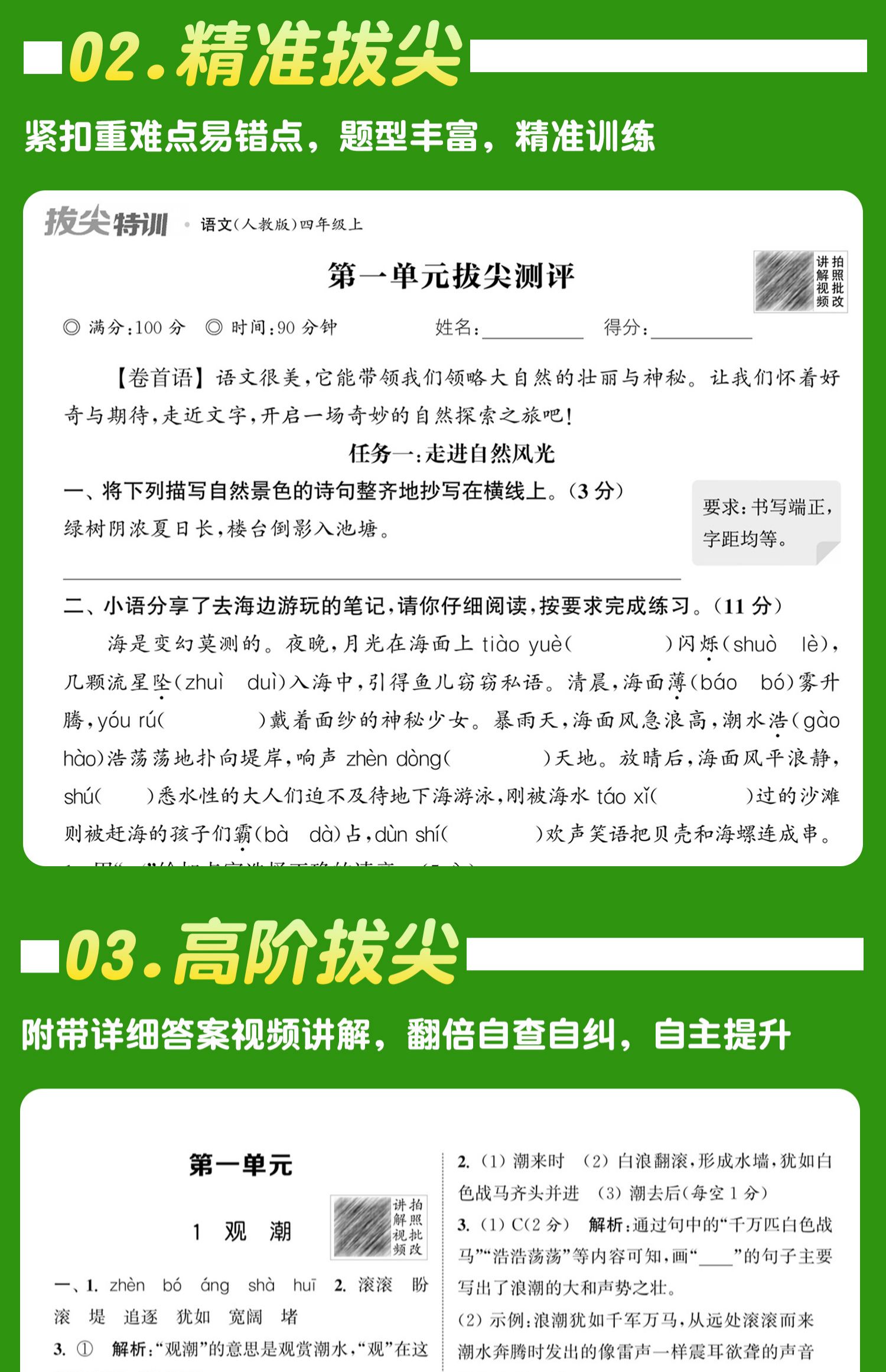 2025秋版小学拔尖特训上册人教版小学生同步训练练习册