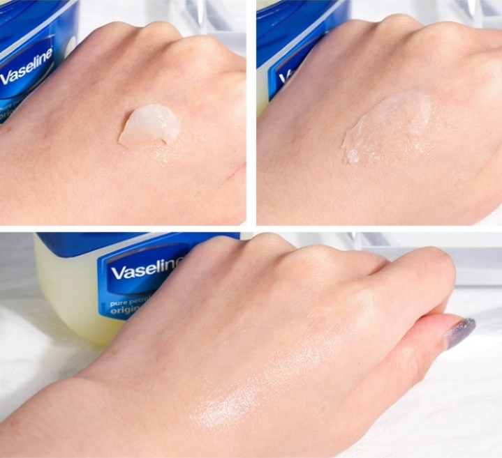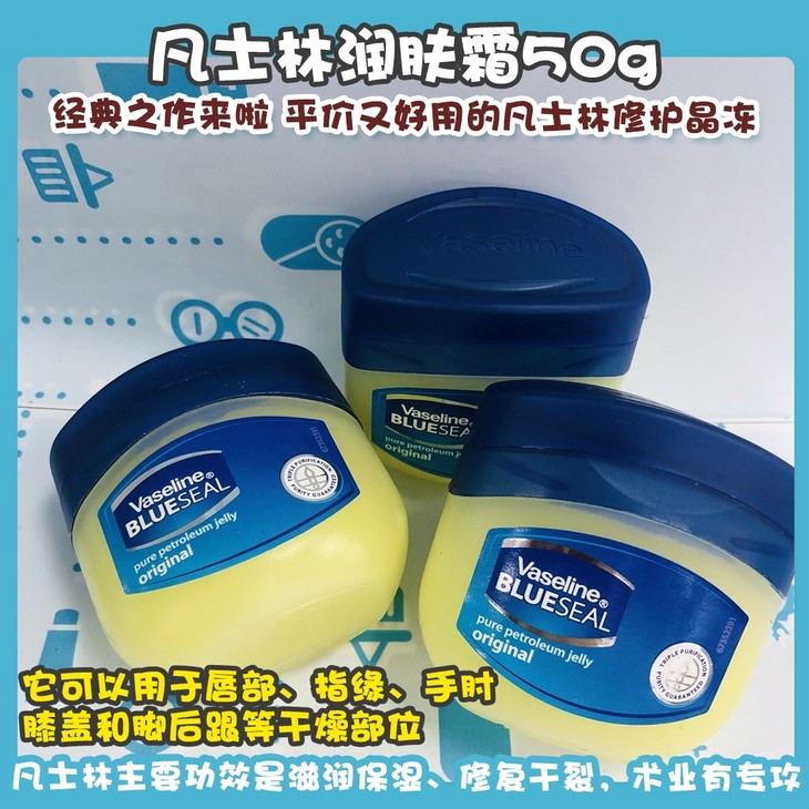 👑凡士林潤膚霜50g 👍经典之作来啦,平价又好用的凡士林修护晶冻 3️⃣重精炼,有效滋润、锁水屏障,修护干燥肌肤,使肌肤弹嫩细腻。 🌟它可以用于唇部、指缘、手肘、膝盖和脚后跟等干燥部位 ❌但千万别轻易相信尝试网上所说的去黑头、去黑眼圈、增长睫毛等做法 🍃凡士林主要功效是滋润保湿、修复干裂,术业有专攻 🌱去黑头的那些效果就留给相应的产品吧,不然得不偿失,皮肤反而变差就不好了~