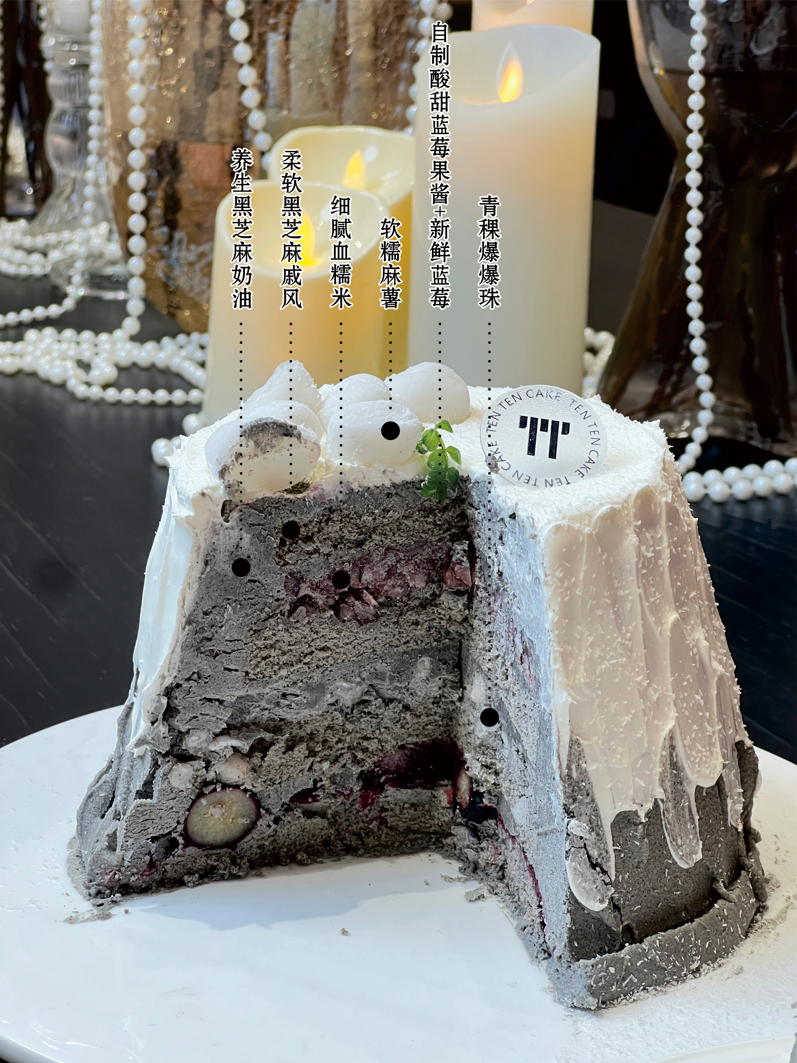这款蛋糕是香而不腻 它有童年时黑芝麻糊的味道 还加了青稞爆爆珠蛋糕增加了口感上的丰富