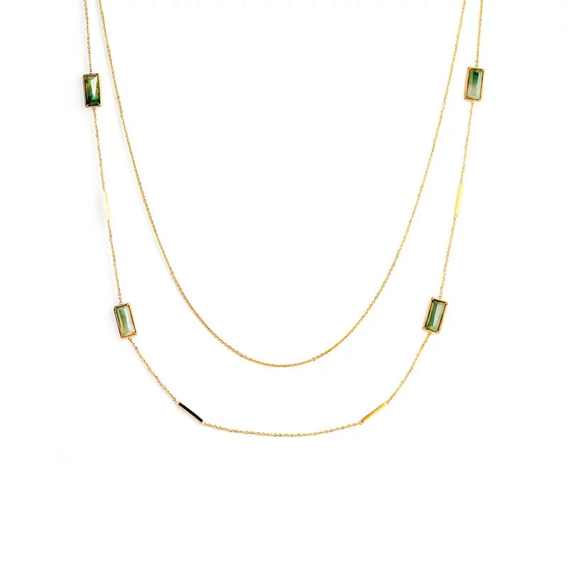 天然翡翠長方形雙長鍊