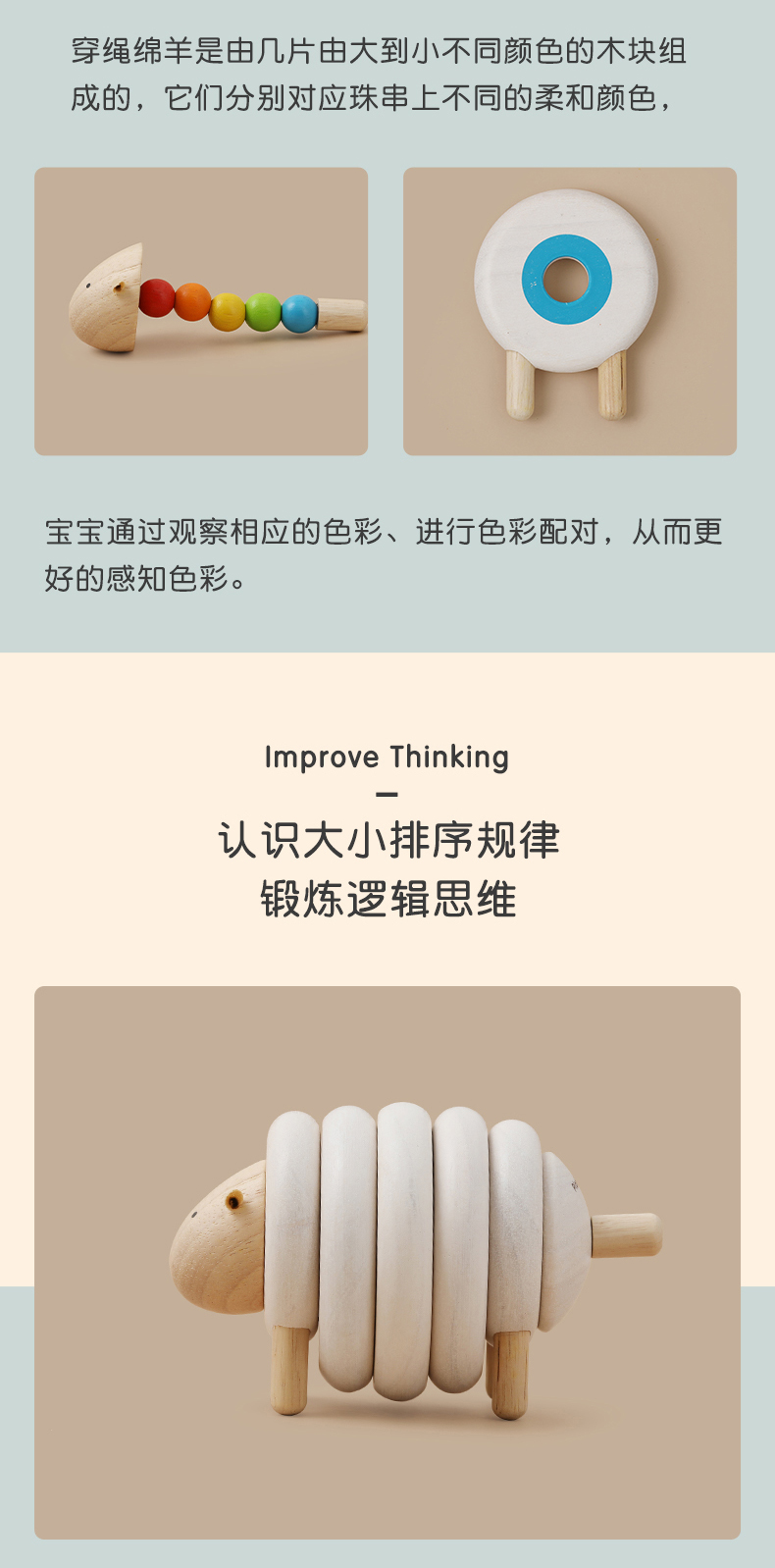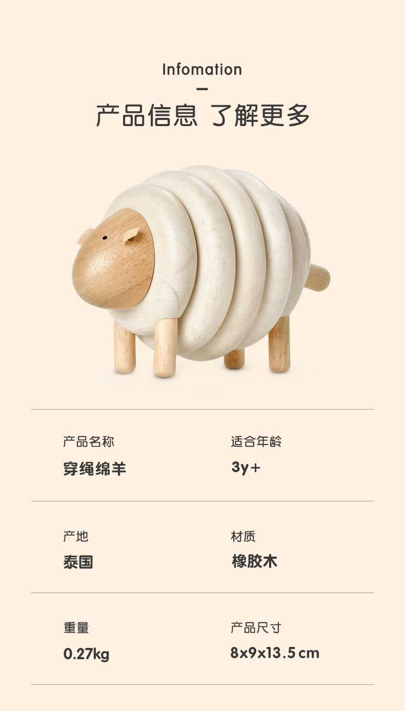 【PlanToys】玩偶串珠颜色配对婴儿穿线积木宝宝穿绳玩具 5150穿绳绵羊