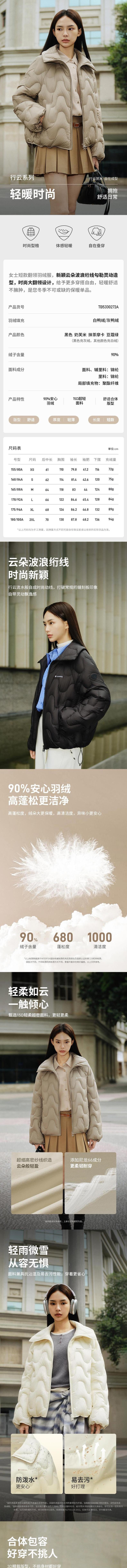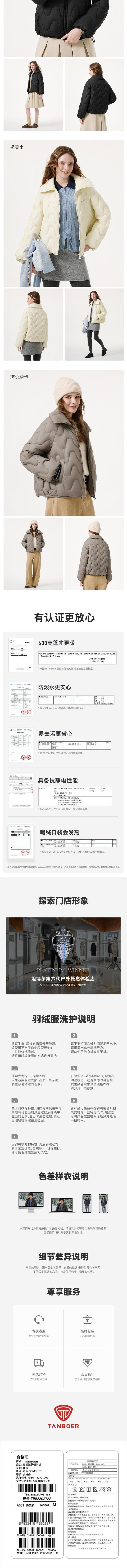 坦博尔 女翻领短款轻羽绒服 TB5330272A