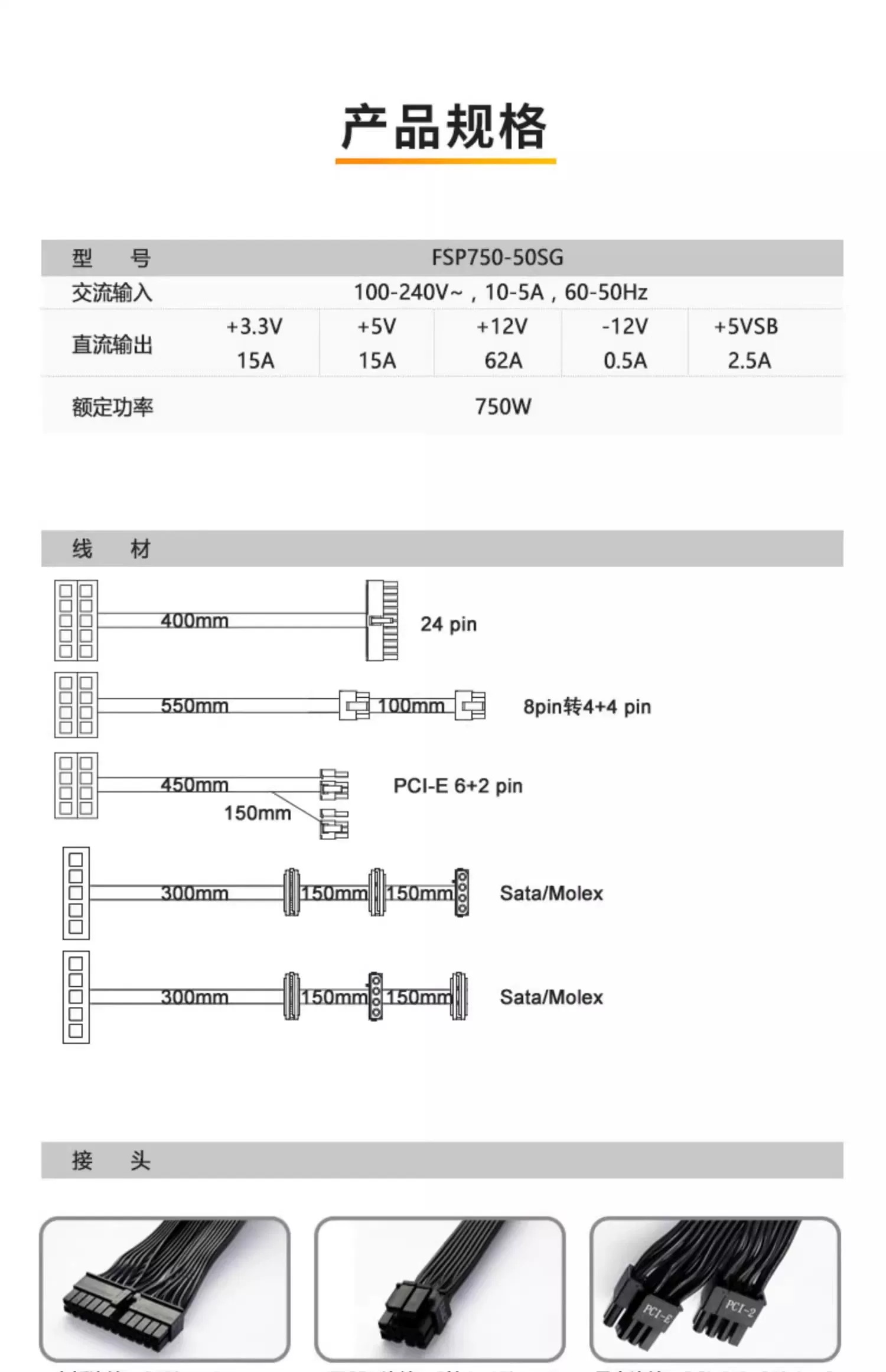 全汉(FSP)MS 750G全模组电源桌面SFX小机箱金牌额定750W电竞游戏组装