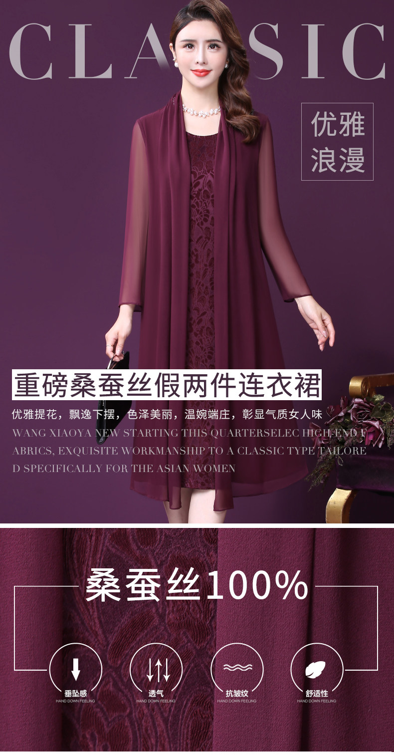 WXY-W-MX-2806真丝连衣裙秋装新款气质轻奢名媛假两件裙