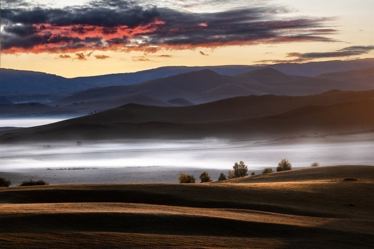 早起拍摄长城日出(由于当天较早,早餐需自理),后乘车前往坝上乌兰布统,下午拍摄小河头,将军泡子日落;