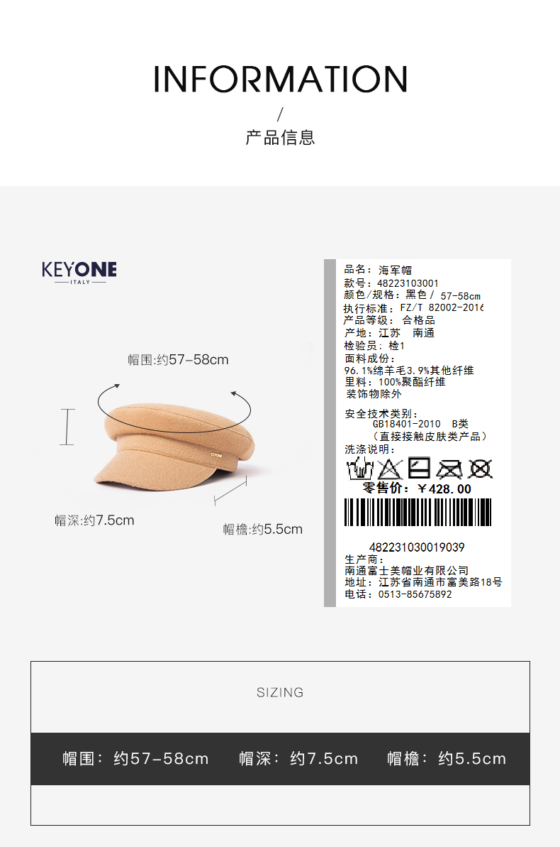 帽仕汇 绵羊毛休闲海军帽