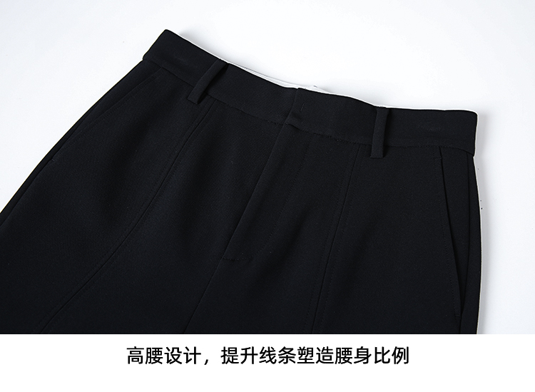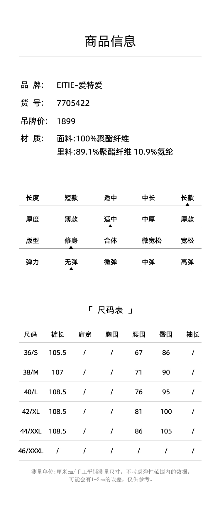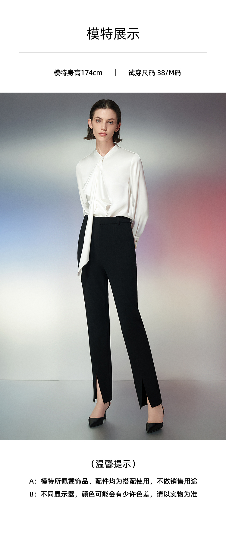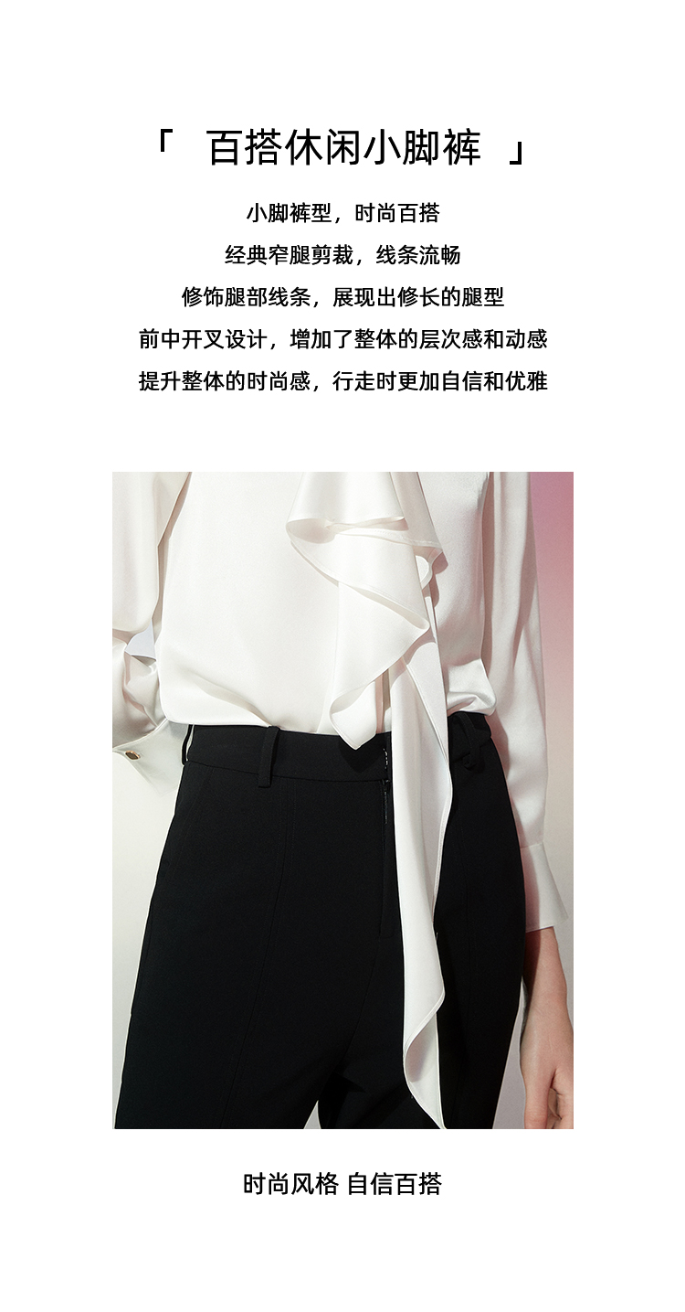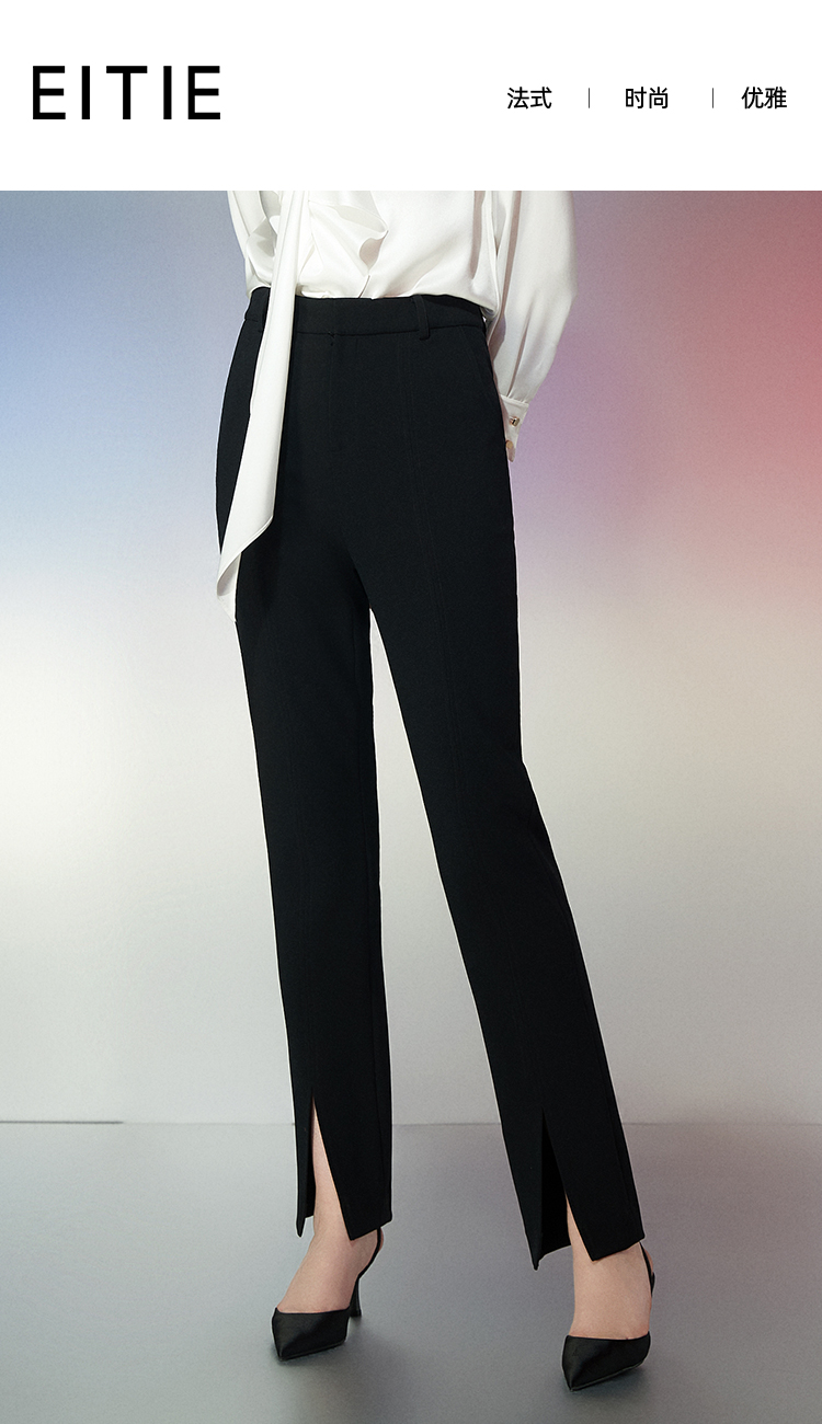 EITIE爱特爱春季新款时尚通勤休闲显瘦高腰开叉百搭裤子7705422