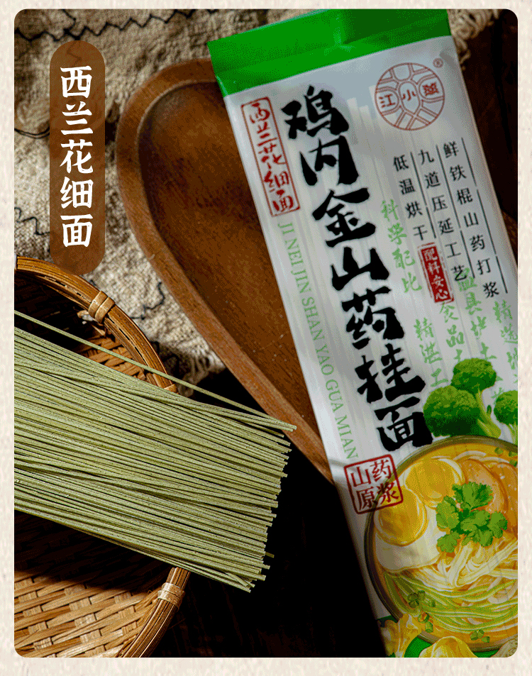 鸡内金山药西蓝花挂面添加了3%的西蓝花粉,把西蓝花的营养和鸡内金山药相结合,让一碗普普通通的面,变成了一款养生好物。