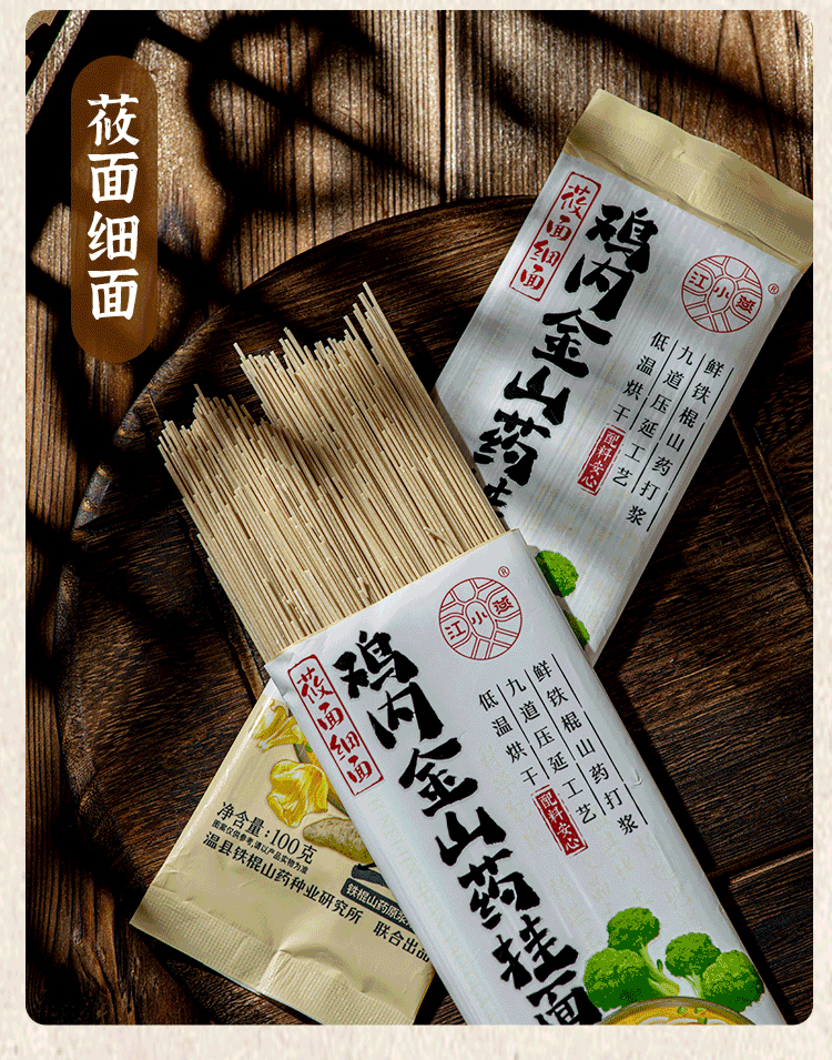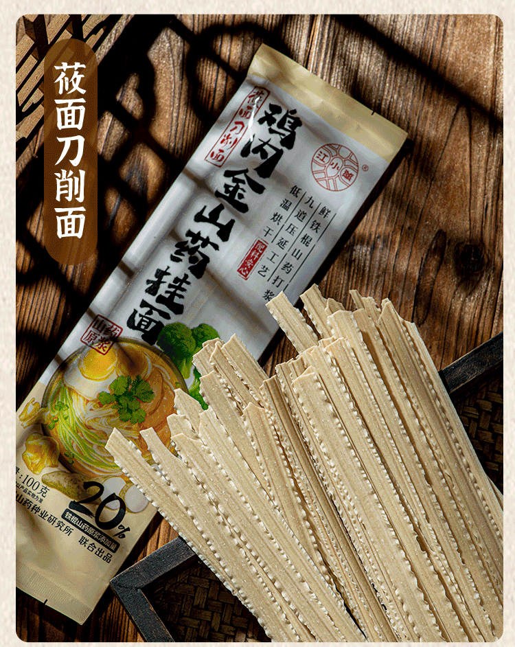 【配料表】莜面:小麦粉、莜麦粉 (30%)、铁棍山药原浆 (20%)、鸡内金粉 (2%)、饮用水。