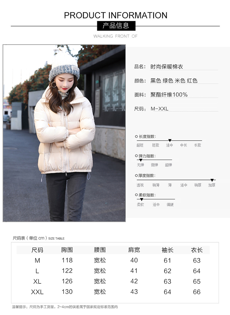 WZNH-ZRX9069时尚气质拉链门襟立领2020冬季百搭短款棉衣
