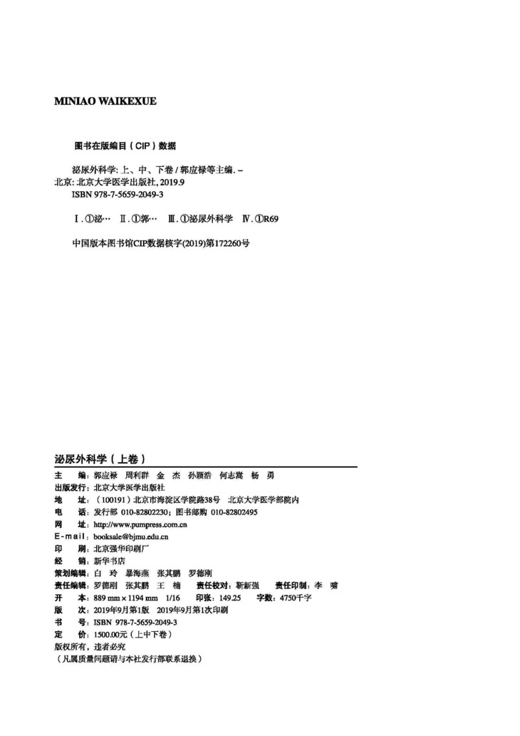 泌尿外科学(上中下卷) 郭应禄等主编 北医社