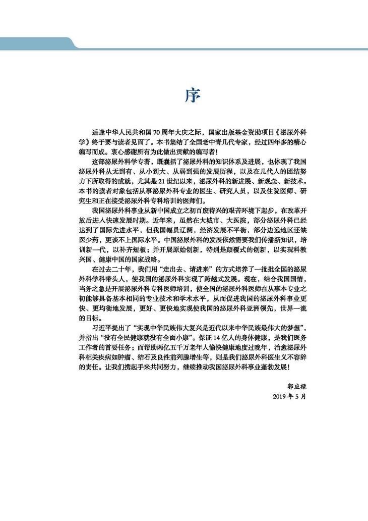 《泌尿外科学》——这部“十二五”国家重点图书,是国家出版基金资助的“泌尿外科学跨媒体出版工程”项目中的扛鼎之作,是由郭应禄院士、孙颖浩院士和周利群教授带领的北京大学泌尿外科研究所牵头,集全国泌尿外科精英共同编写的上、中、下三卷本配以6000 余分钟手术视频的大型学术融媒体专著。全书历经四年多的编写,现在即将付梓面世。回首编写过程,酸甜苦辣,感慨良多。