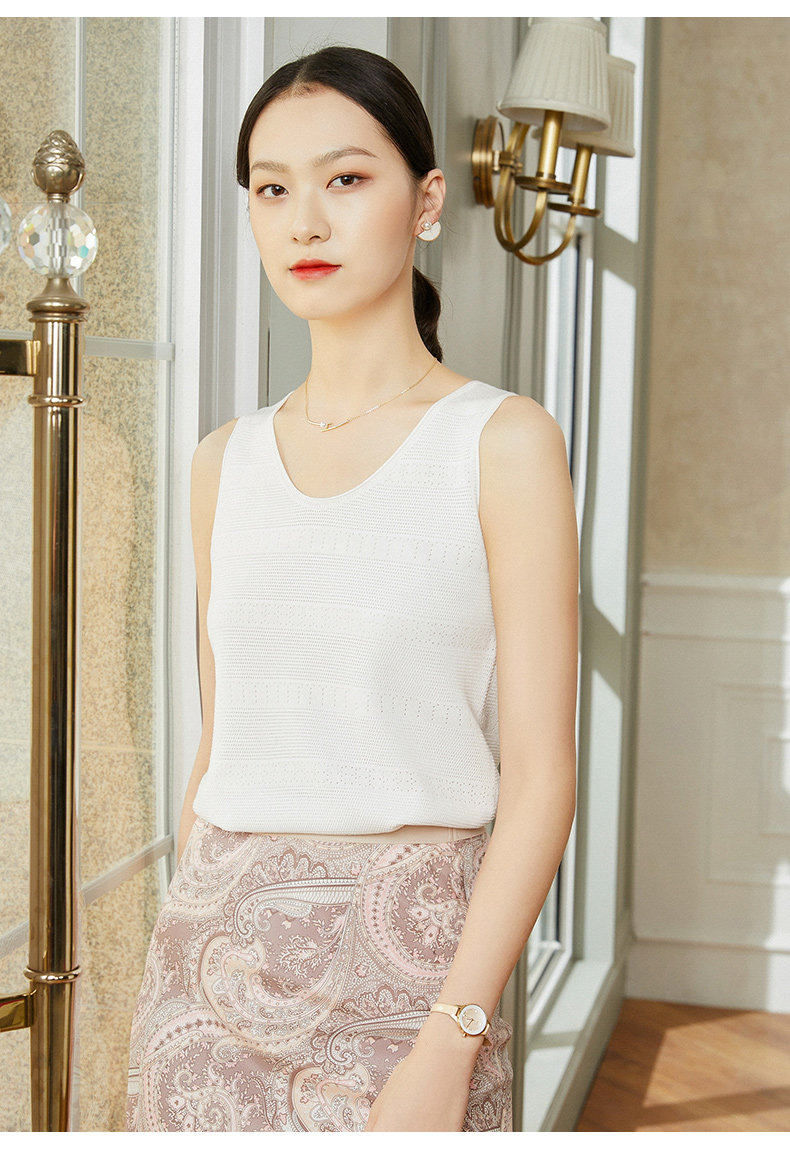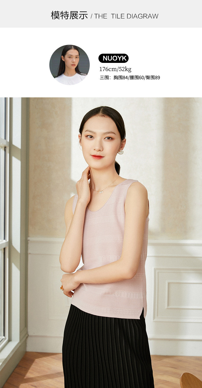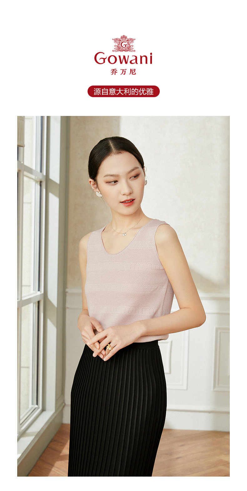 【两色可选】乔万尼春款冰丝针织衫女薄款小香风设计感无袖背心打底衫EI2M811