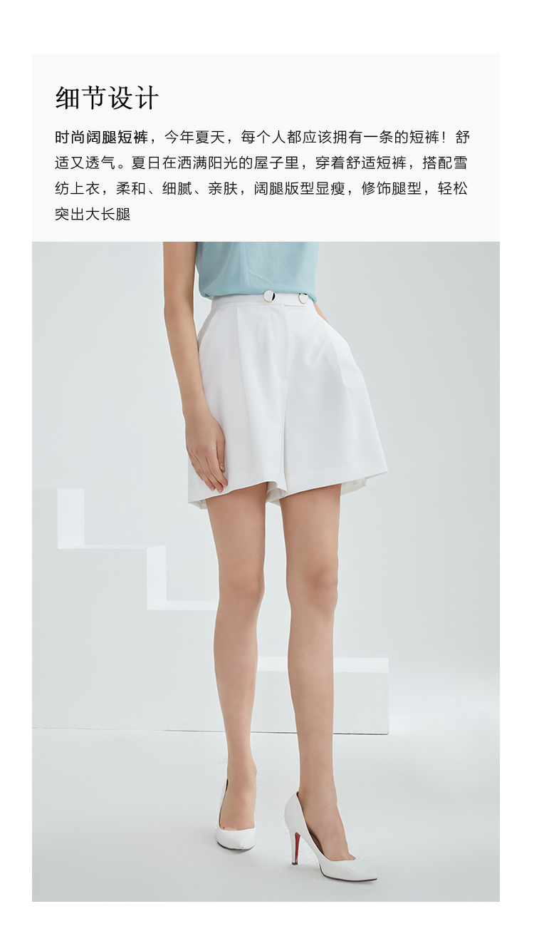 EITIE爱特爱夏季新款宽松显瘦舒适轻薄通勤百搭阔脚西装短裤B2105706