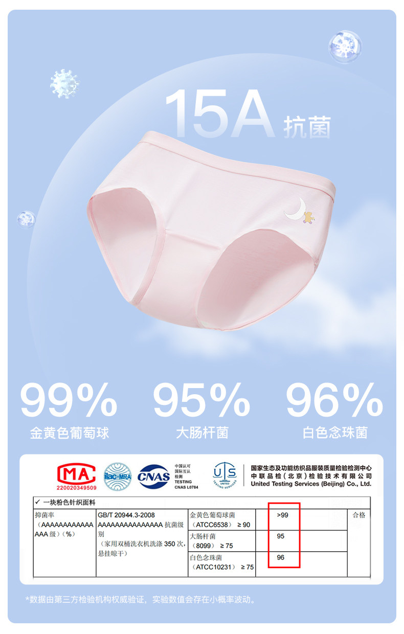 【E】likeuu成人内裤女款a类莱莫成人女平角三角短款5条装LC3261091 商品图1