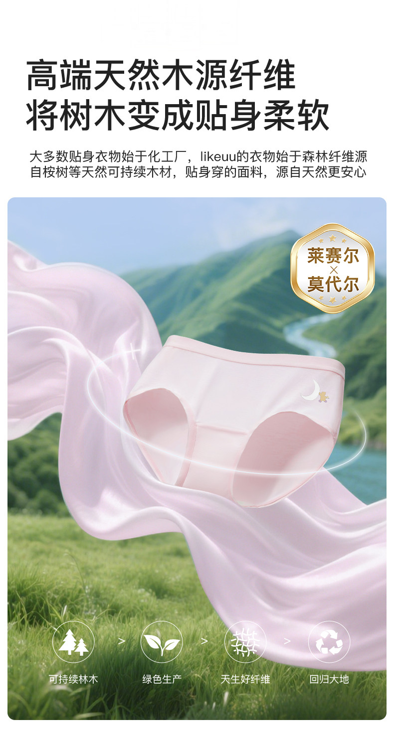 【E】likeuu成人内裤女款a类莱莫成人女平角三角短款5条装LC3261091 商品图3
