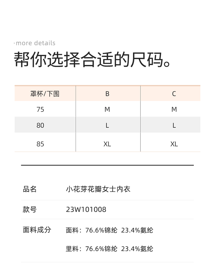 【E】幸棉小花牙花瓣女士内衣