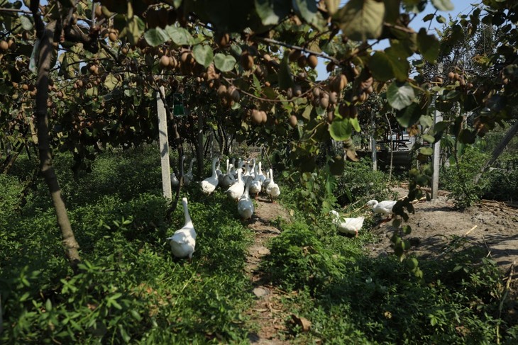 为了改善猕猴桃生长环境,果园里不使用除草剂,杂草长到五十公分左右才会用打草机除一次草,还套种枣树,苜蓿,玉米,丰富生物多样性,能够最大程度避免虫害。