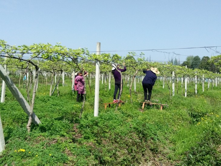 猕猴桃地不使用农药除草剂,也不使用膨大剂甜蜜素这些激素药物。只通过疏花疏果来控制果子的大小,小心翼翼地平衡着品质与产量。