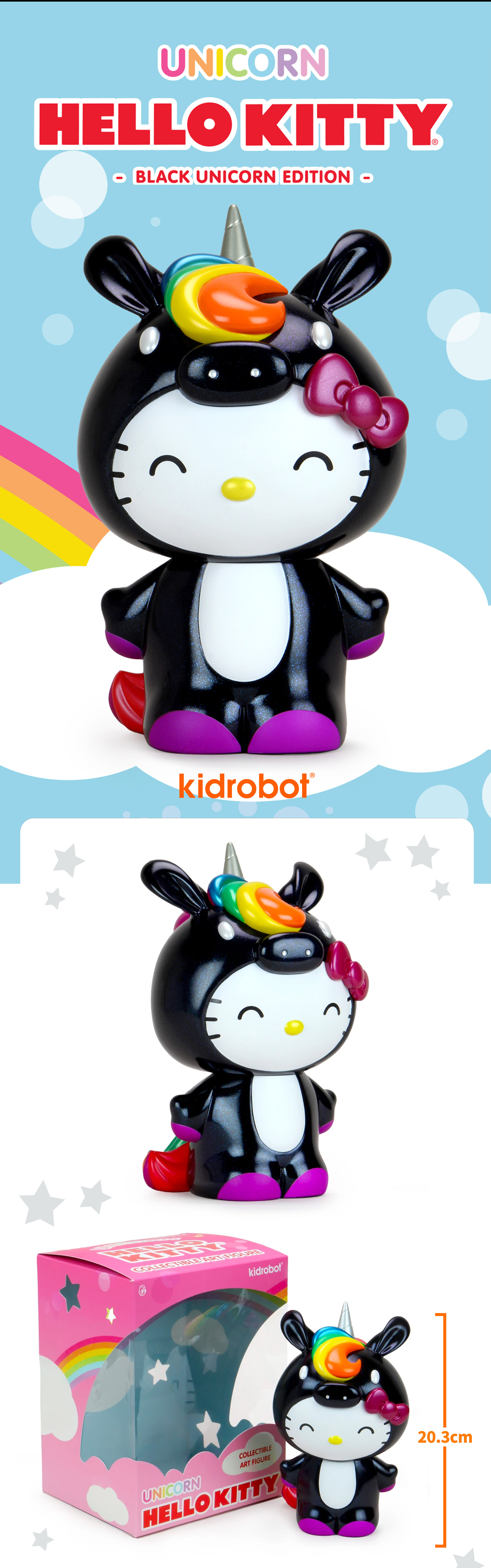 现货 Kidrobot 凯蒂猫独角兽系列 黑色版 Hello Kitty