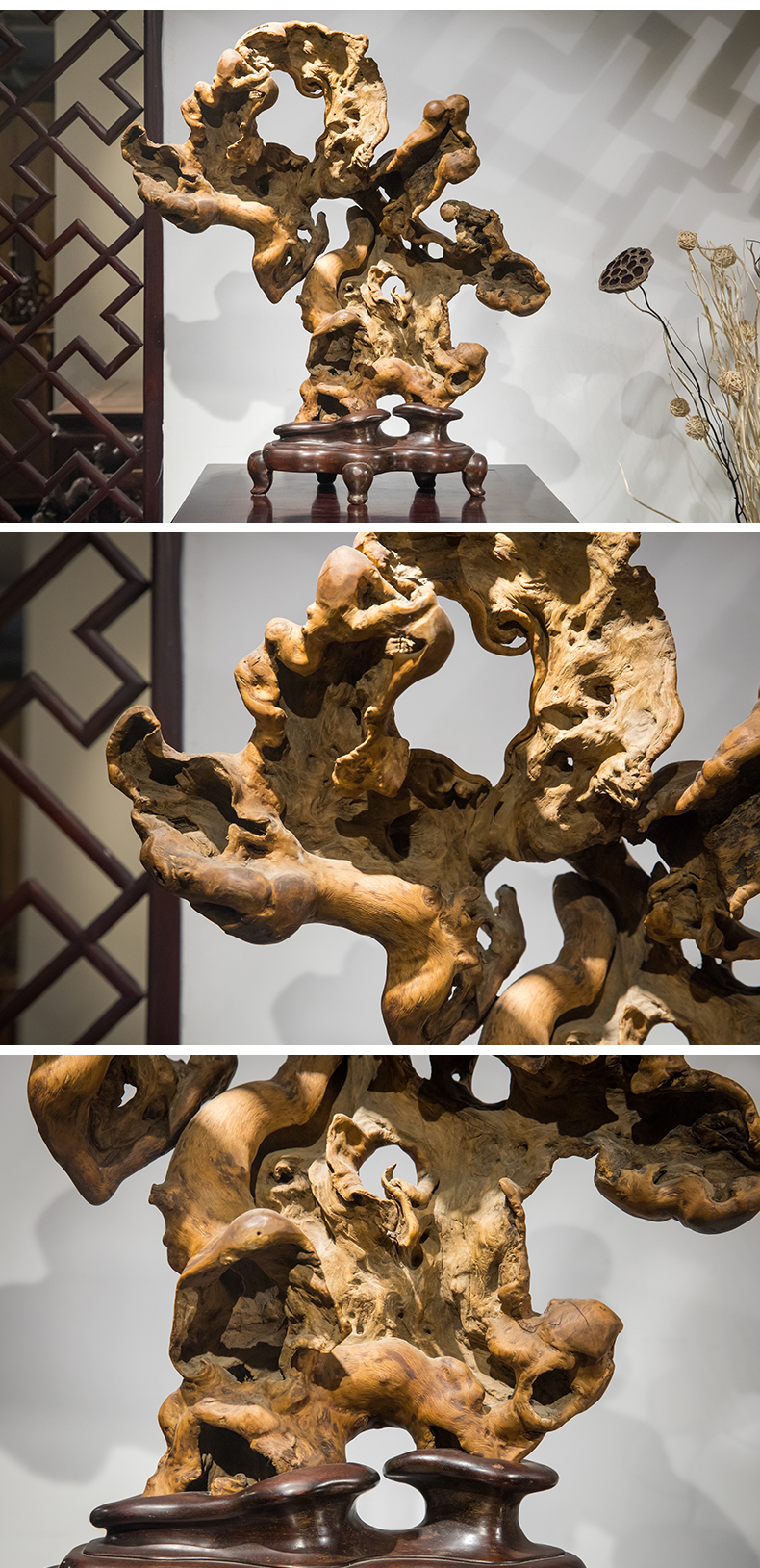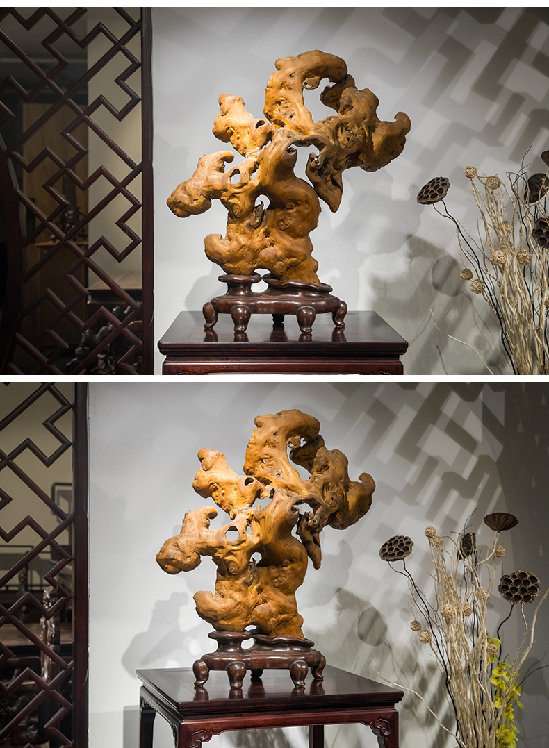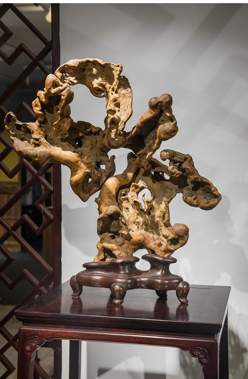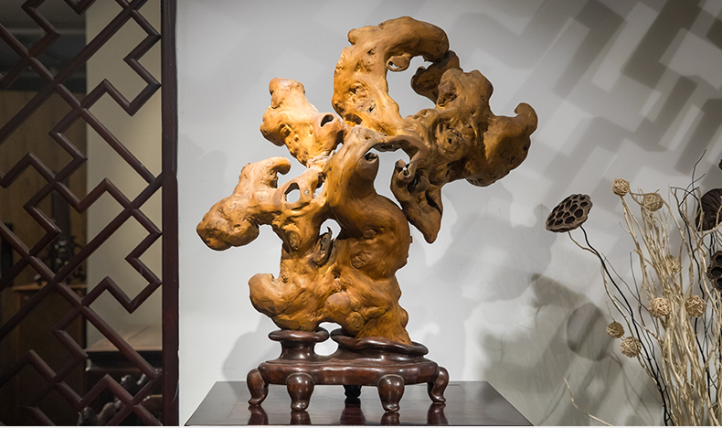 清 黄杨木雕根结形器座