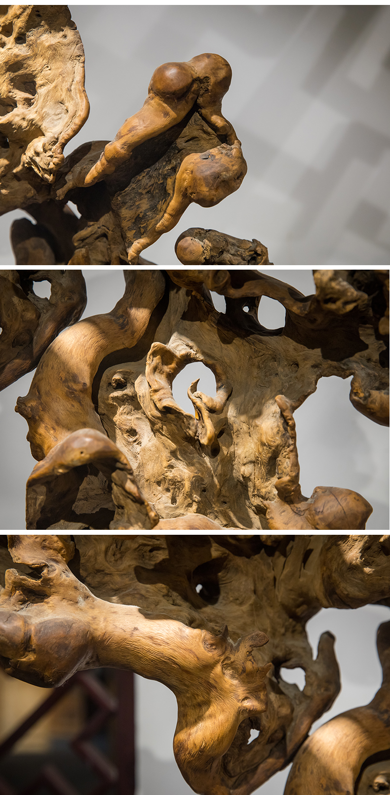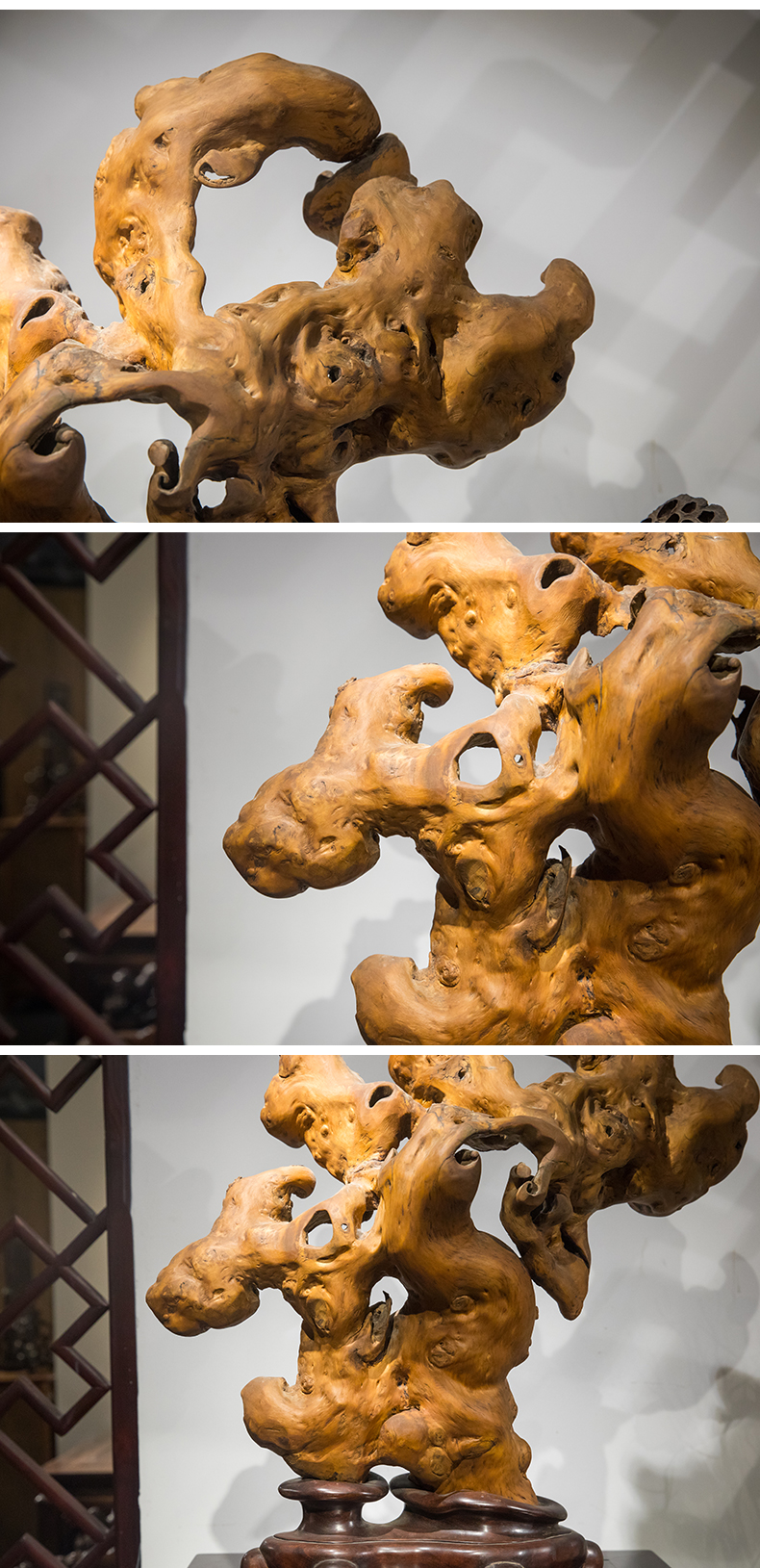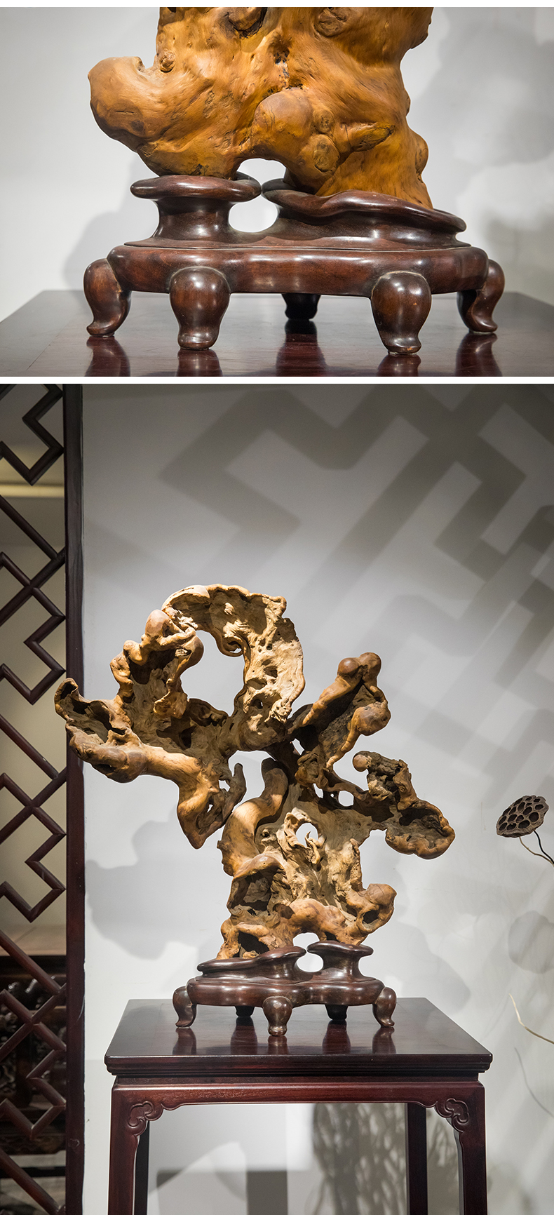 清 黄杨木雕根结形器座