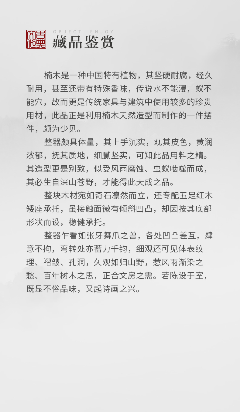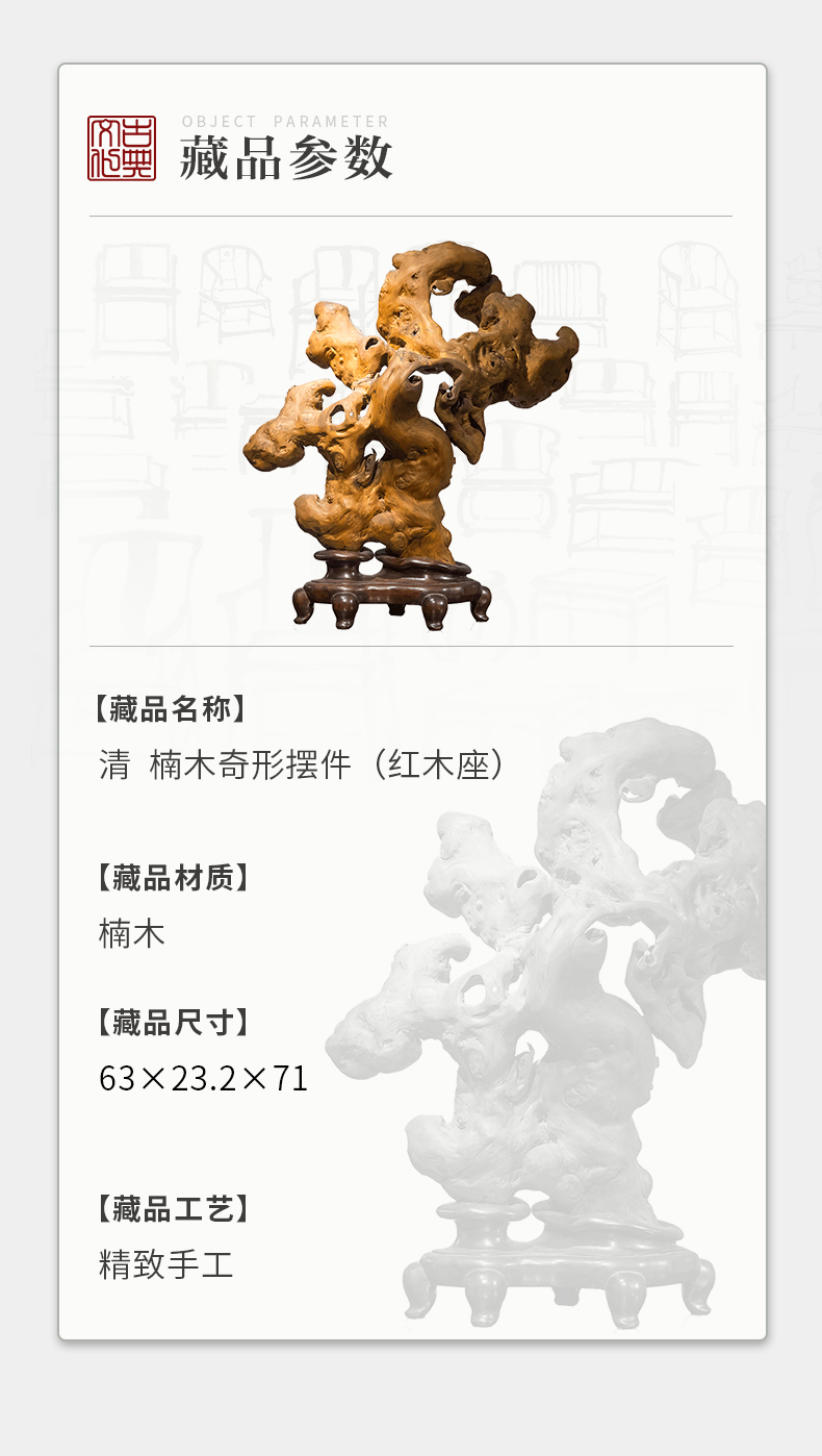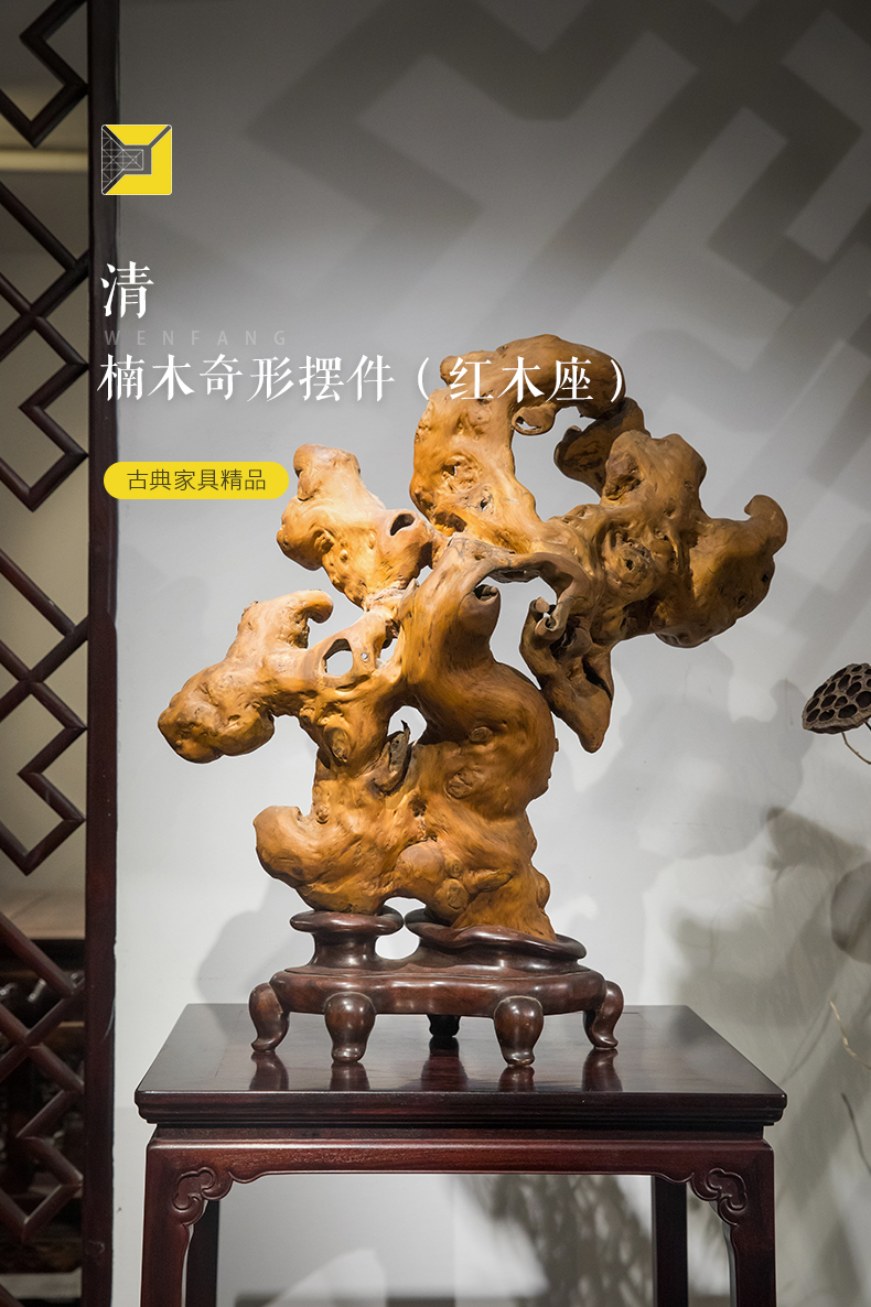 清 楠木奇形五福捧寿摆件(红木座)
