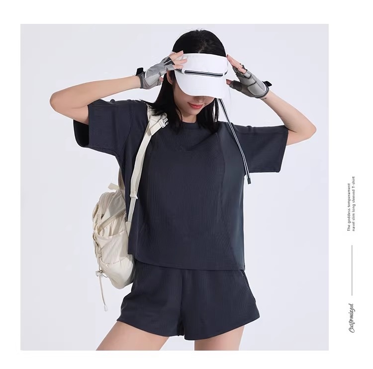 跃牌【周游世界系列】速干休闲健身服螺纹跑步运动透气女上衣 TP0680