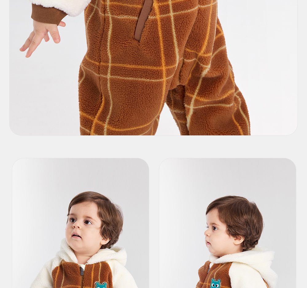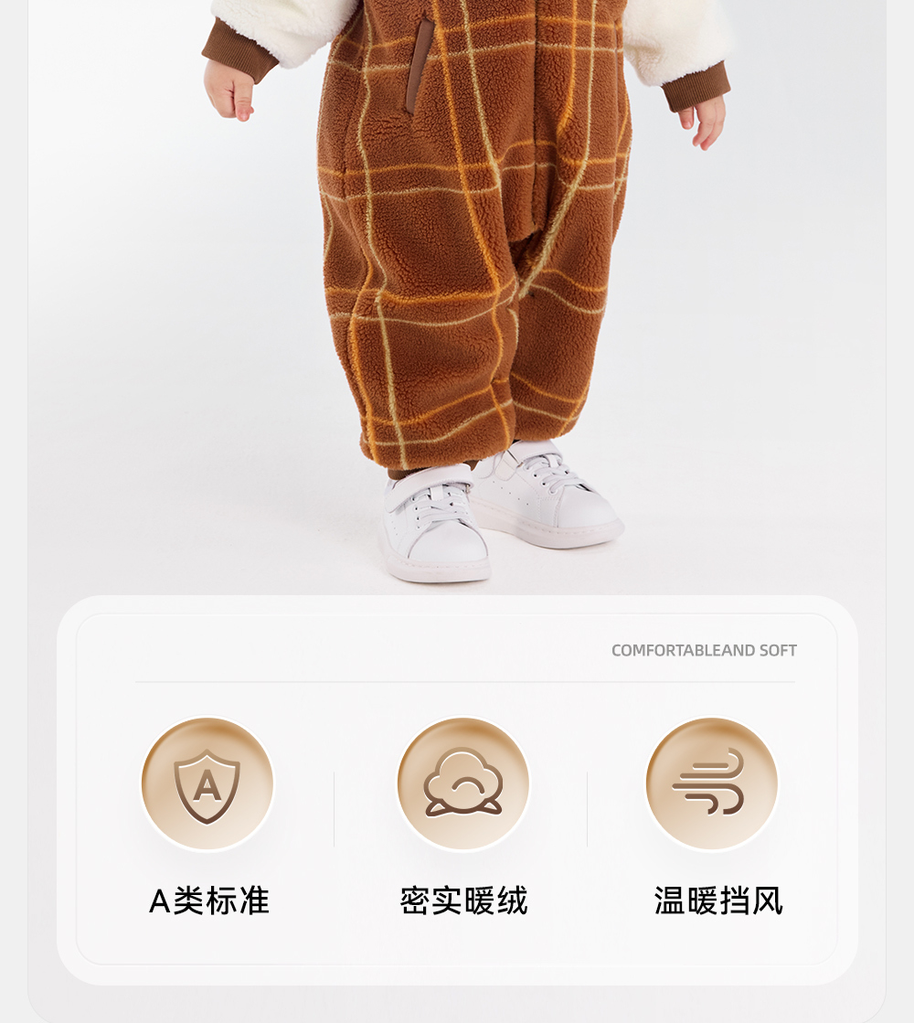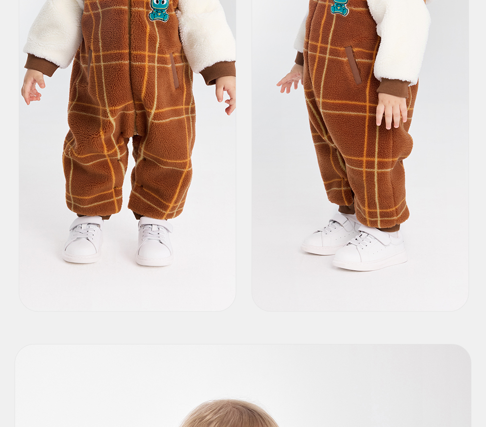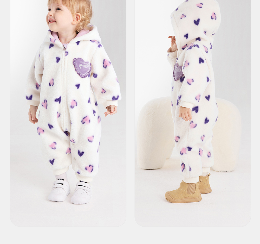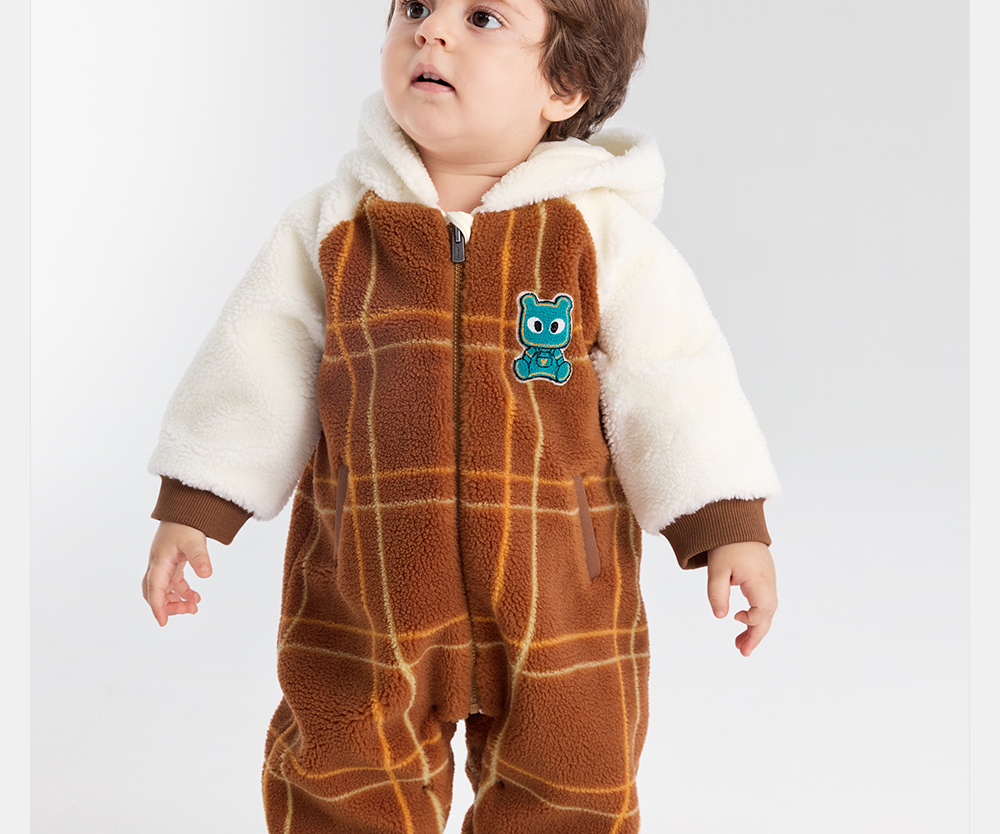 英氏婴儿衣服秋冬加绒保暖男童女童连体衣包屁衣新款宝宝爬服