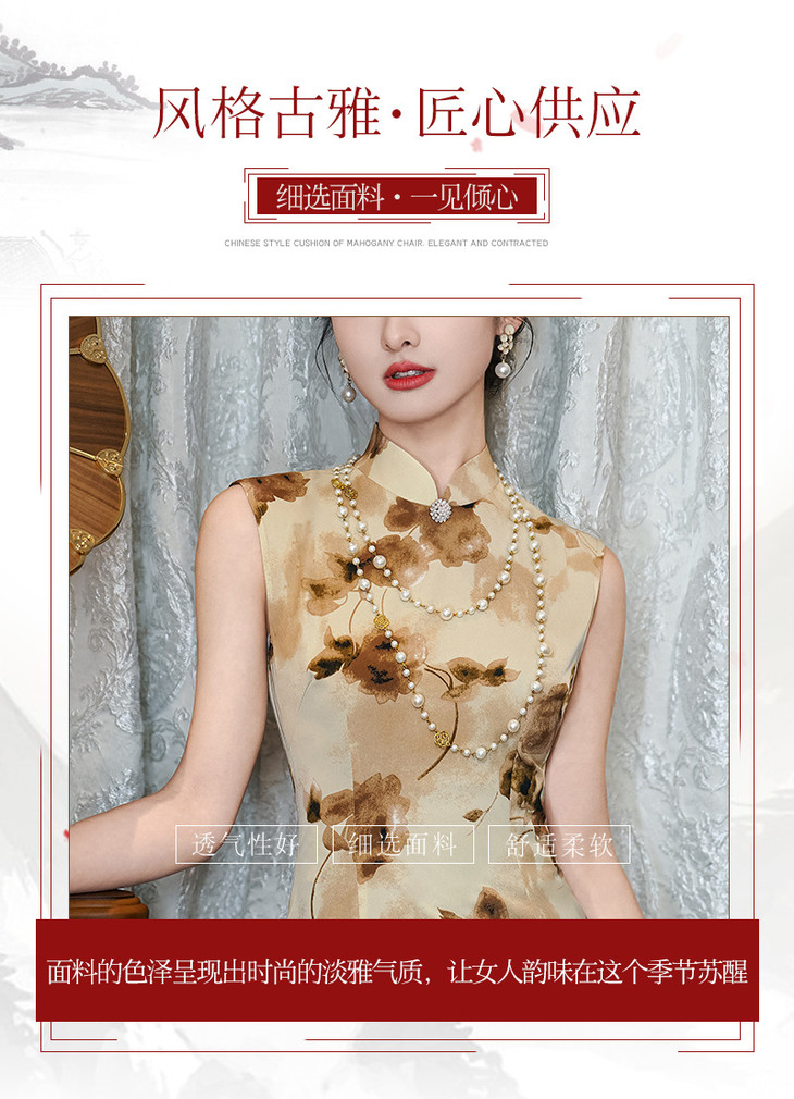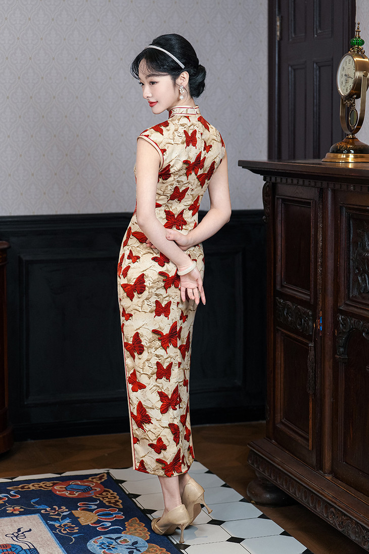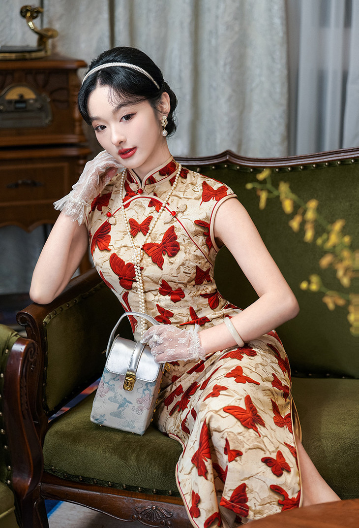 2025年春夏款新款老上海复古无袖长款国风蝴蝶立体印花旗袍XL1205 商品图1