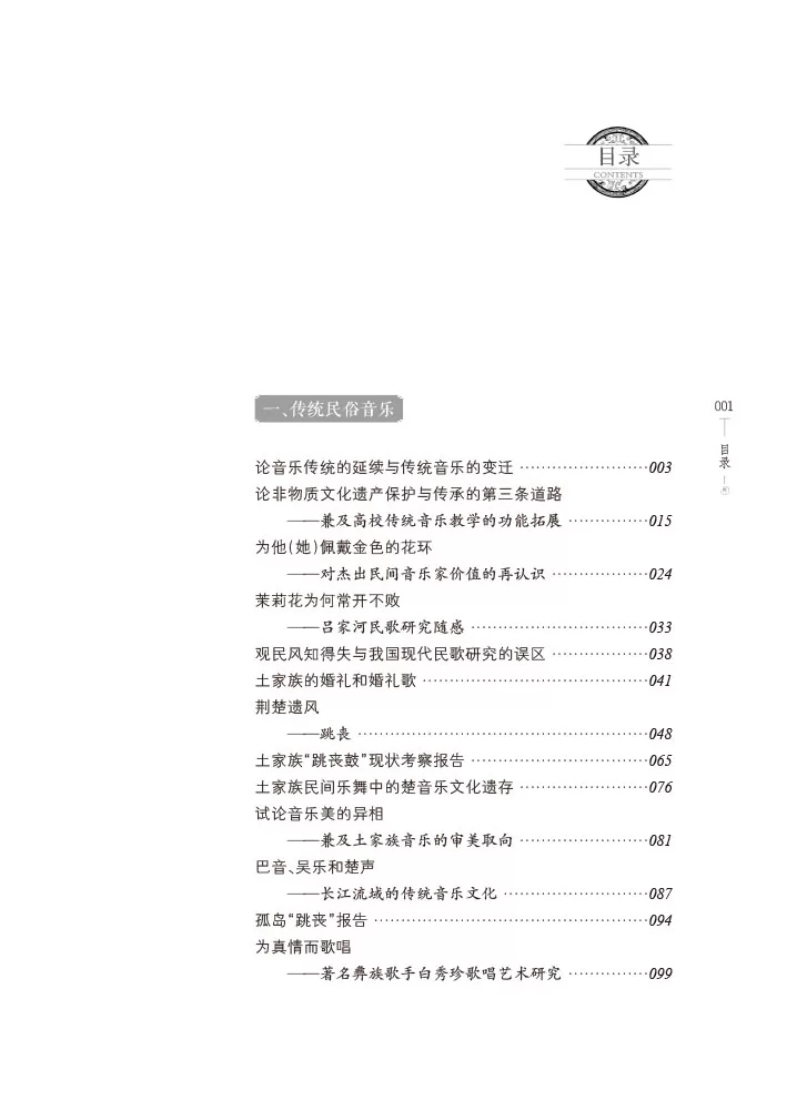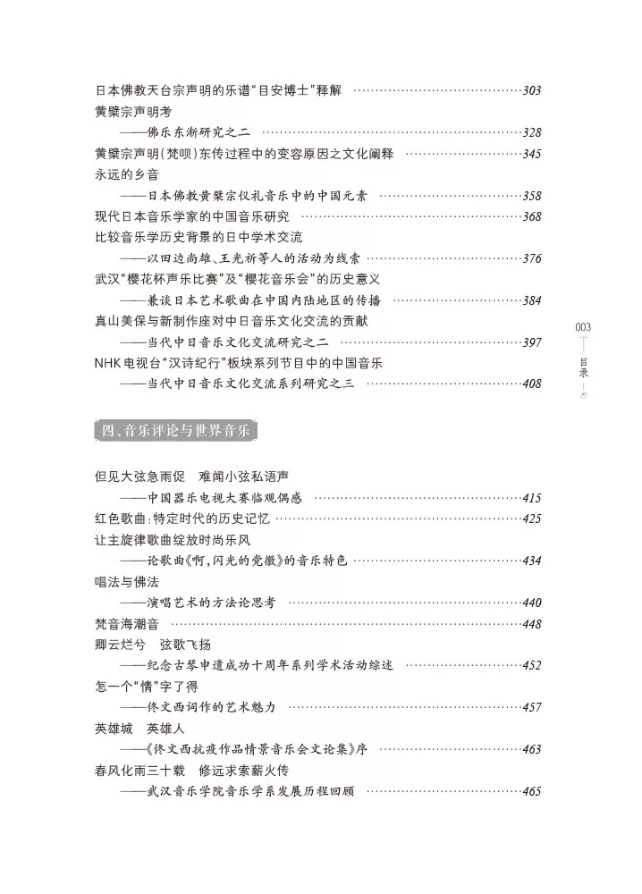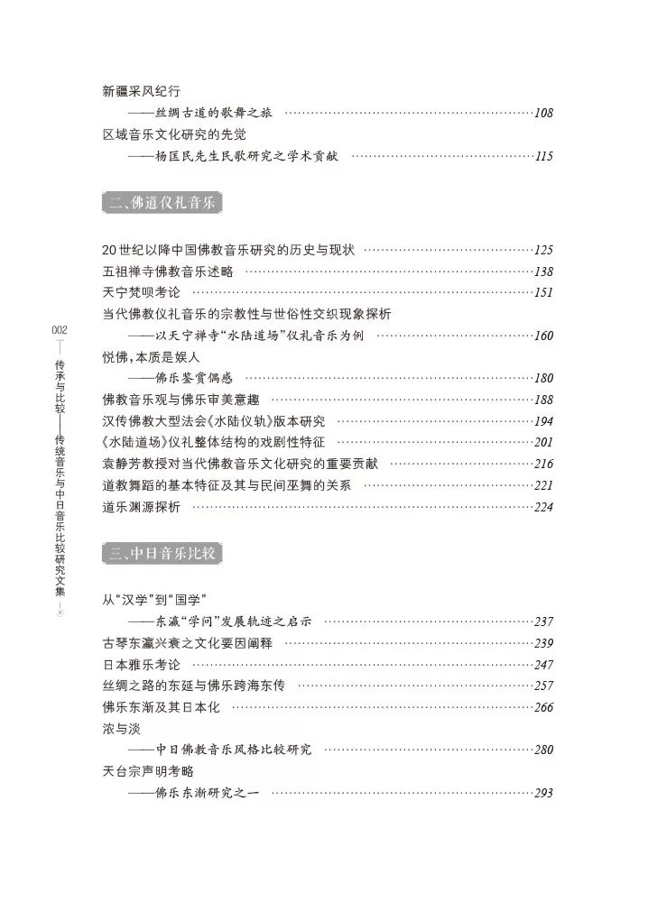 《传承与比较——传统音乐与中日音乐比较研究文集》是武汉音乐学院重点学科建设项目"民族音乐学博士课程与教材建设"的重要研究成果之一。本书全面、系统地收录了作者各个时期多方面的音乐研究成果,内容较为丰富,共71篇,分五个主题,分别为"传统民俗音乐""佛道仪礼音乐""中日音乐比较""音乐评论与世界音乐""其他"等。其中既有对土家族音乐如婚礼歌、跳丧鼓等民间乐舞形式的探讨,也有对西亚国家及日本的音乐传承的介绍,同时还对佛教及道教仪礼音乐的特点、佛乐的跨海东传及其日本化、中日佛乐音乐风格等进行了探索。 |