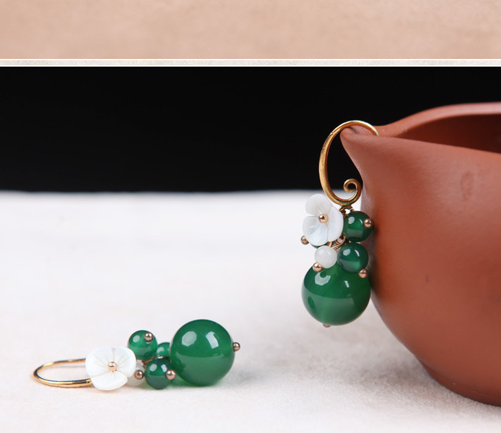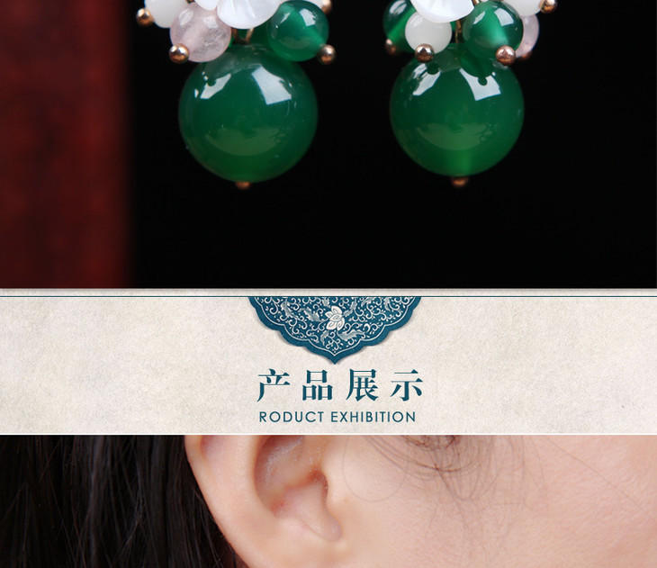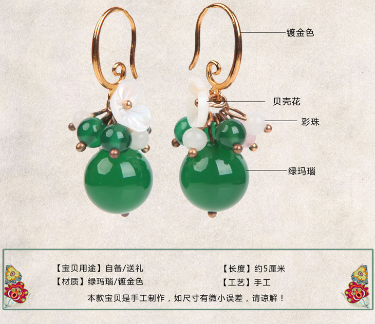 民族风短款耳环时尚耳坠贝壳花绿玛瑙