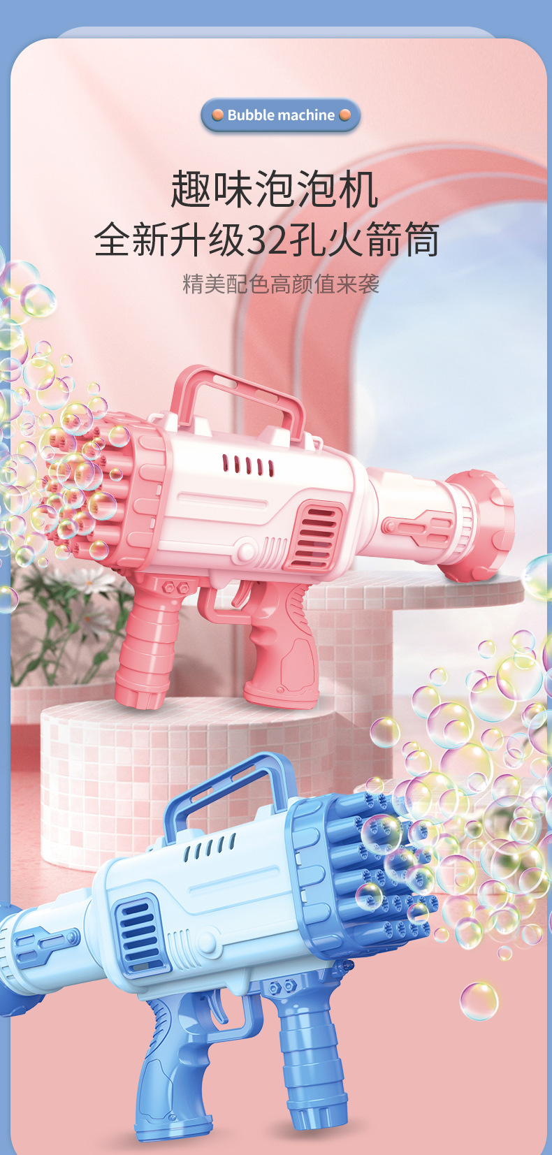 【操作简单轻松上手!一键即出泡】32孔火箭筒泡泡枪全自动泡泡机,手持多孔加特林儿童玩具,精美造型,丰富泡泡更好玩,室内户外皆适用-QQ