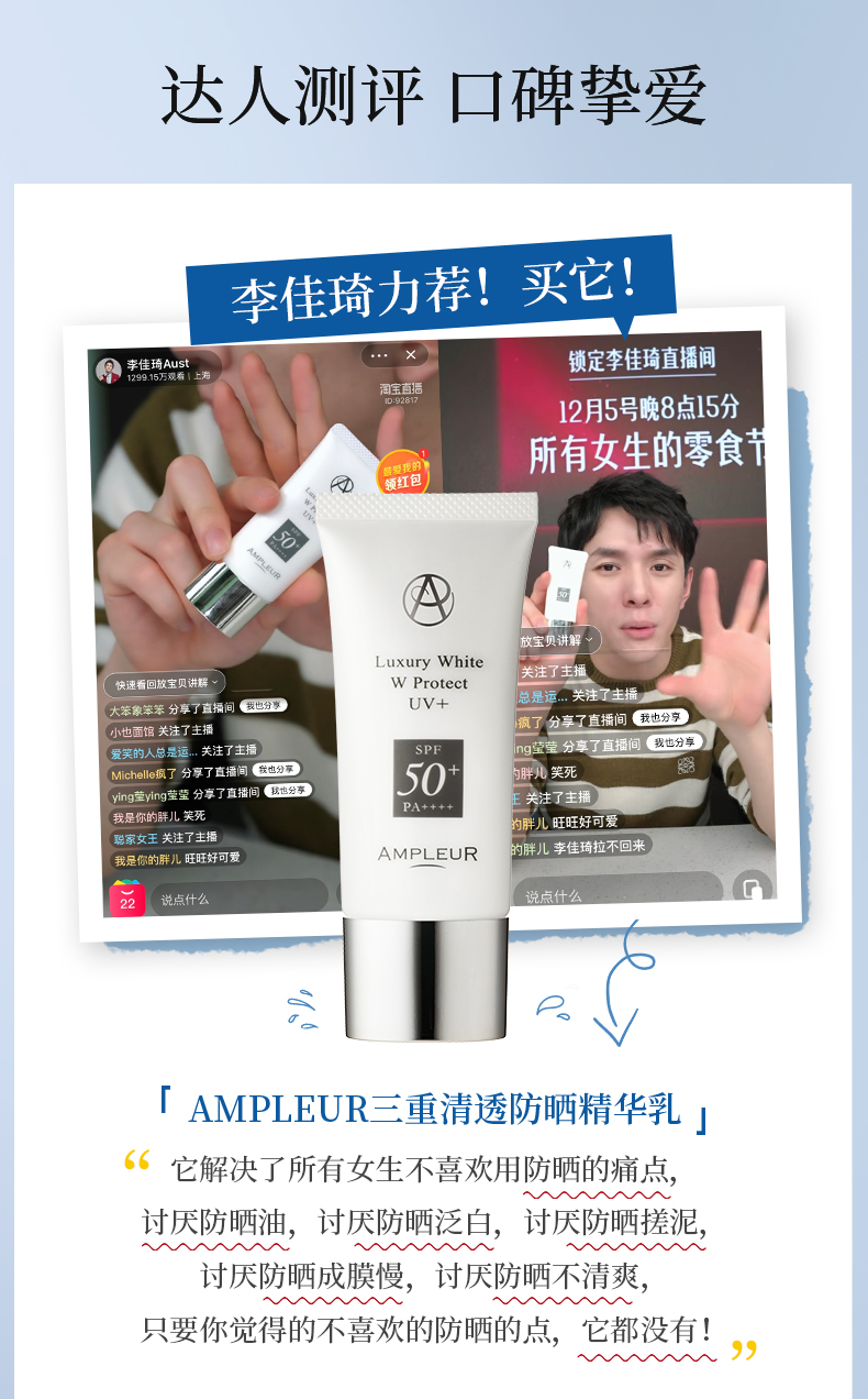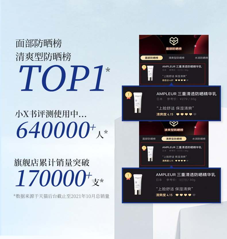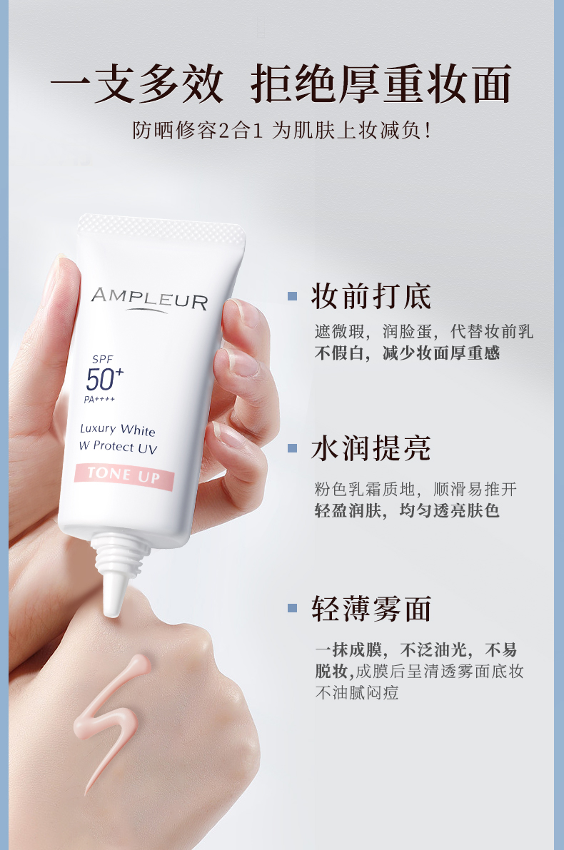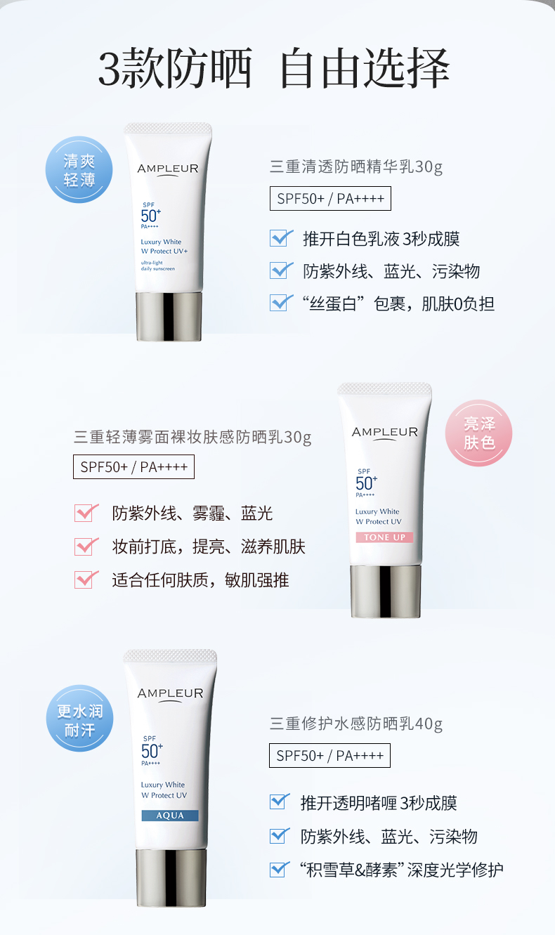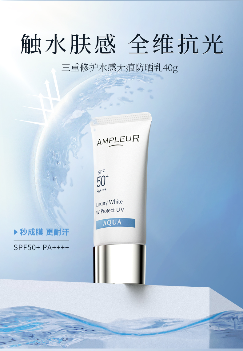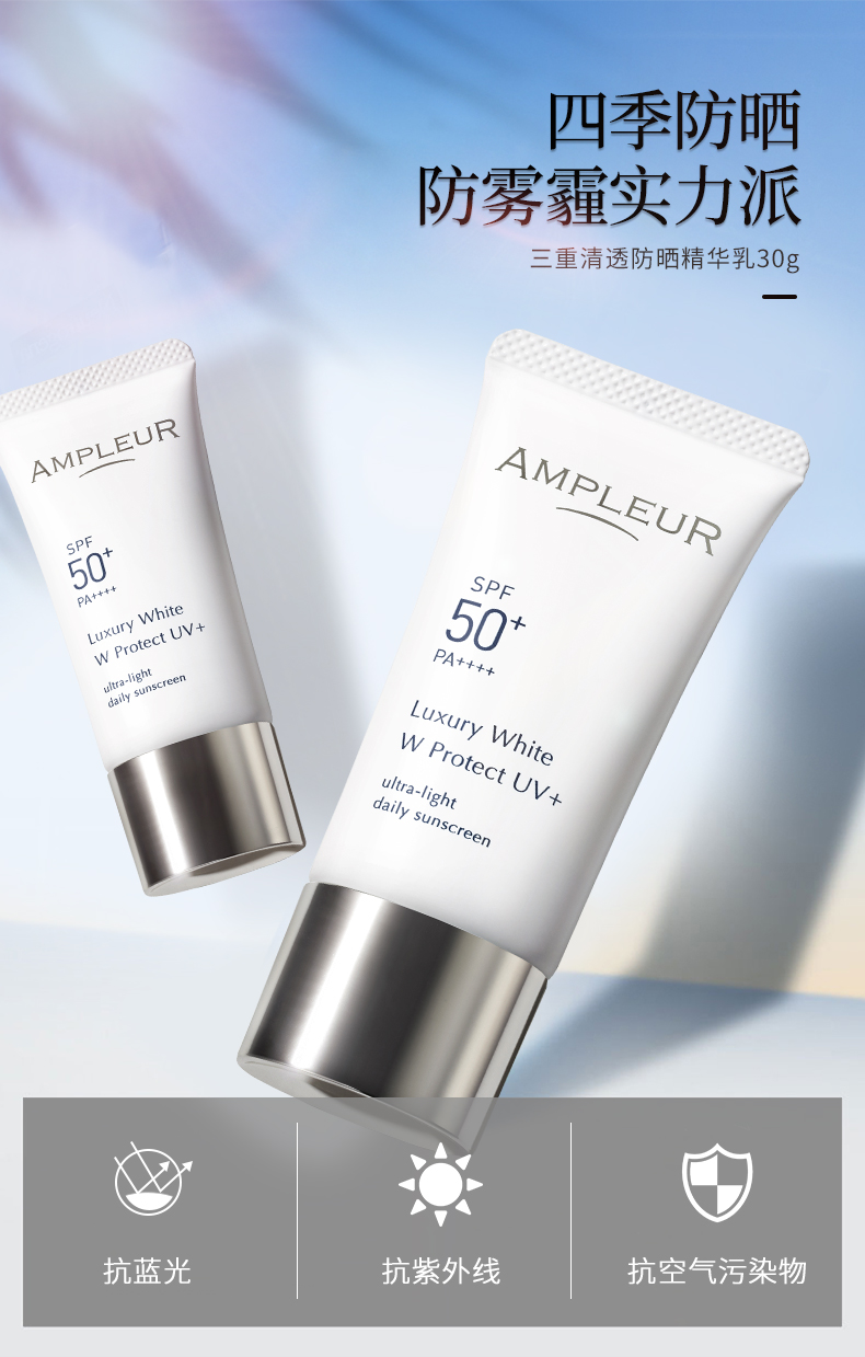 ampleur防晒小白伞SPF50+三重防蓝光精华乳 高倍防晒霜面部隔离