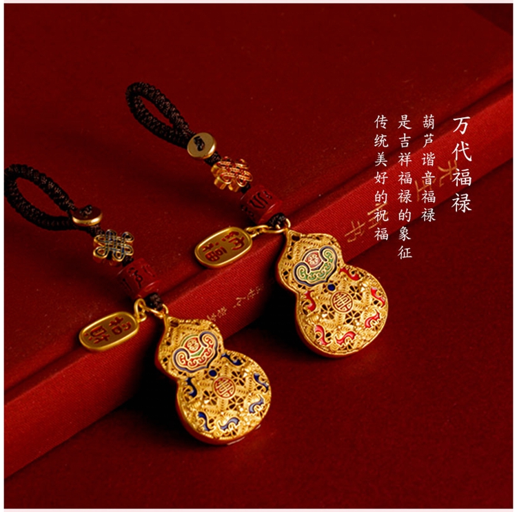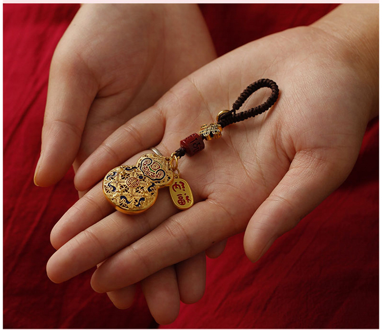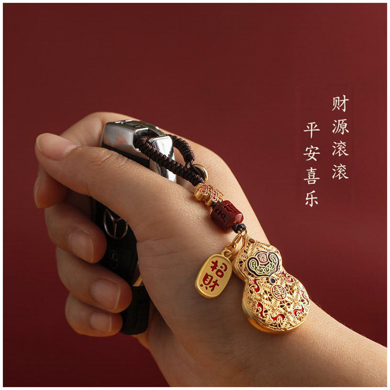 3-4创意汽车钥匙扣网红国潮纯铜葫芦福禄高档钥匙挂坠饰品包坠情侣款