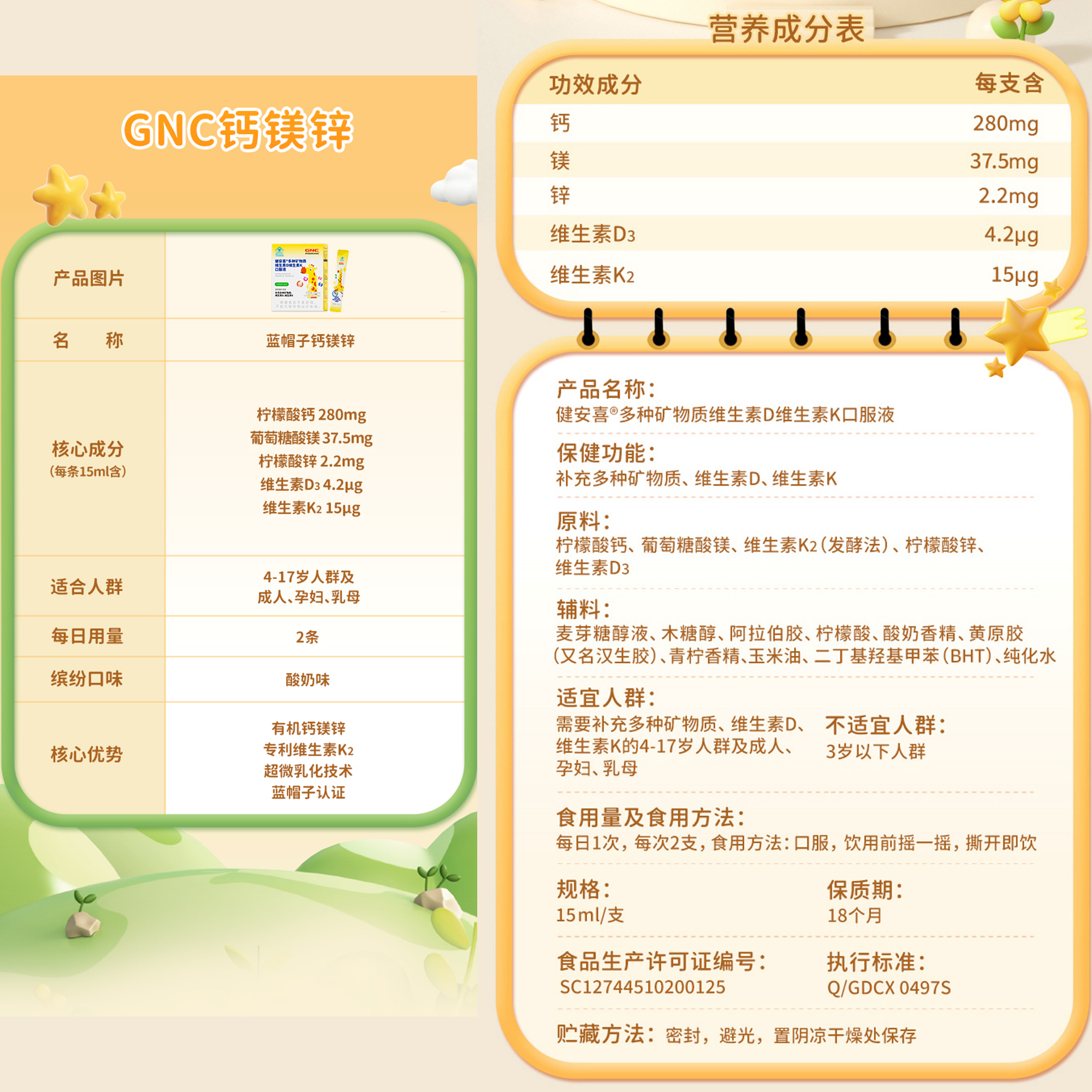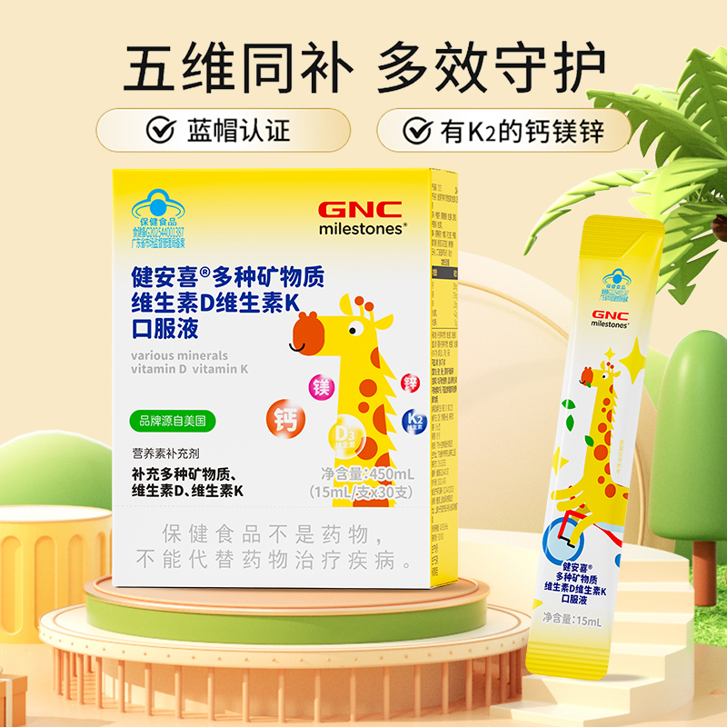 GNC健安喜多种矿物质维生素D维生素K口服液/1盒(15ml*30支)生产日期:25年7月补单专用