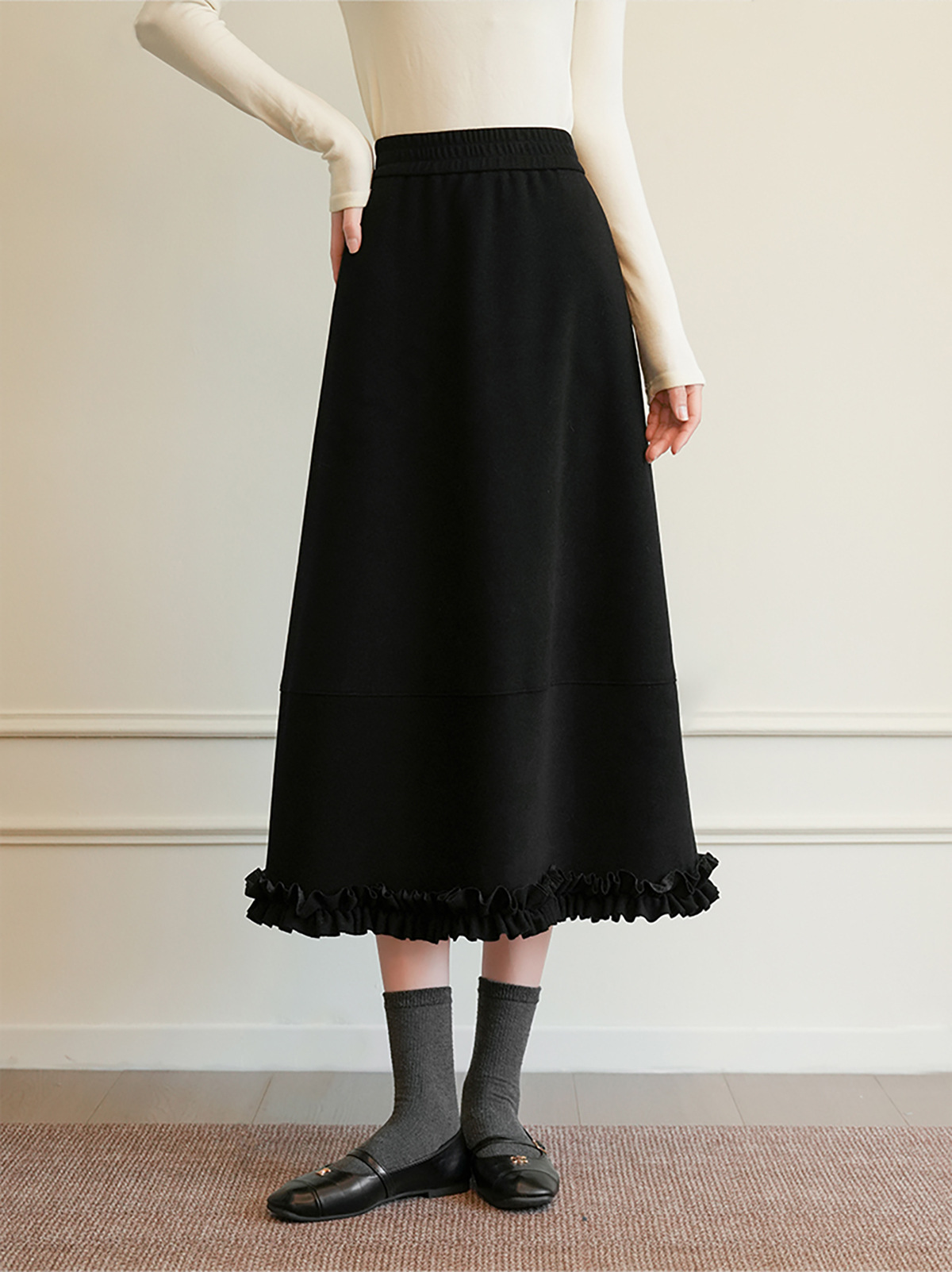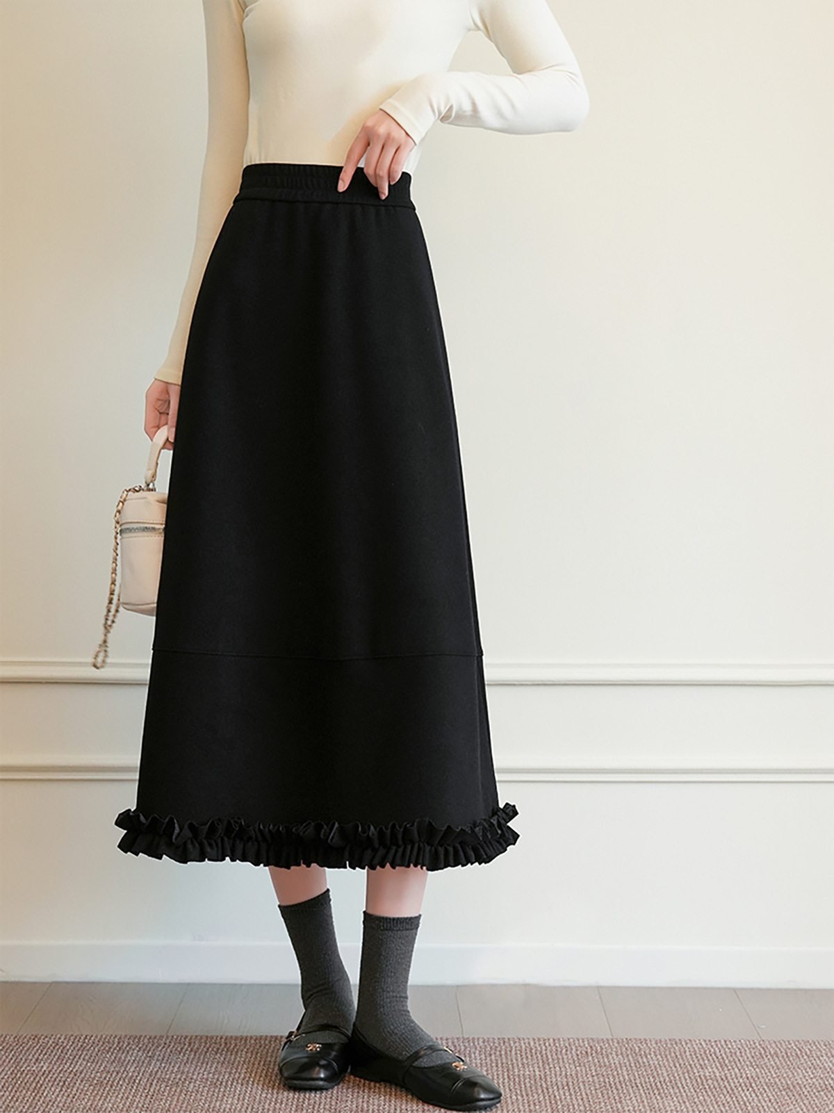 「高货sh」全新升级【铂金会员220/天猫289/差价69】(10142)洛诗琳醋酸羊毛混纺半身裙2025秋冬高腰木耳边加厚A字伞裙