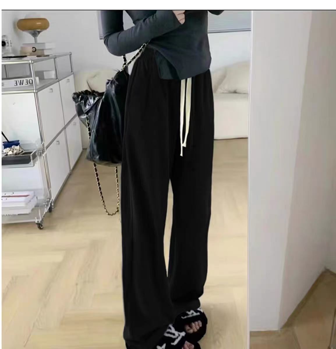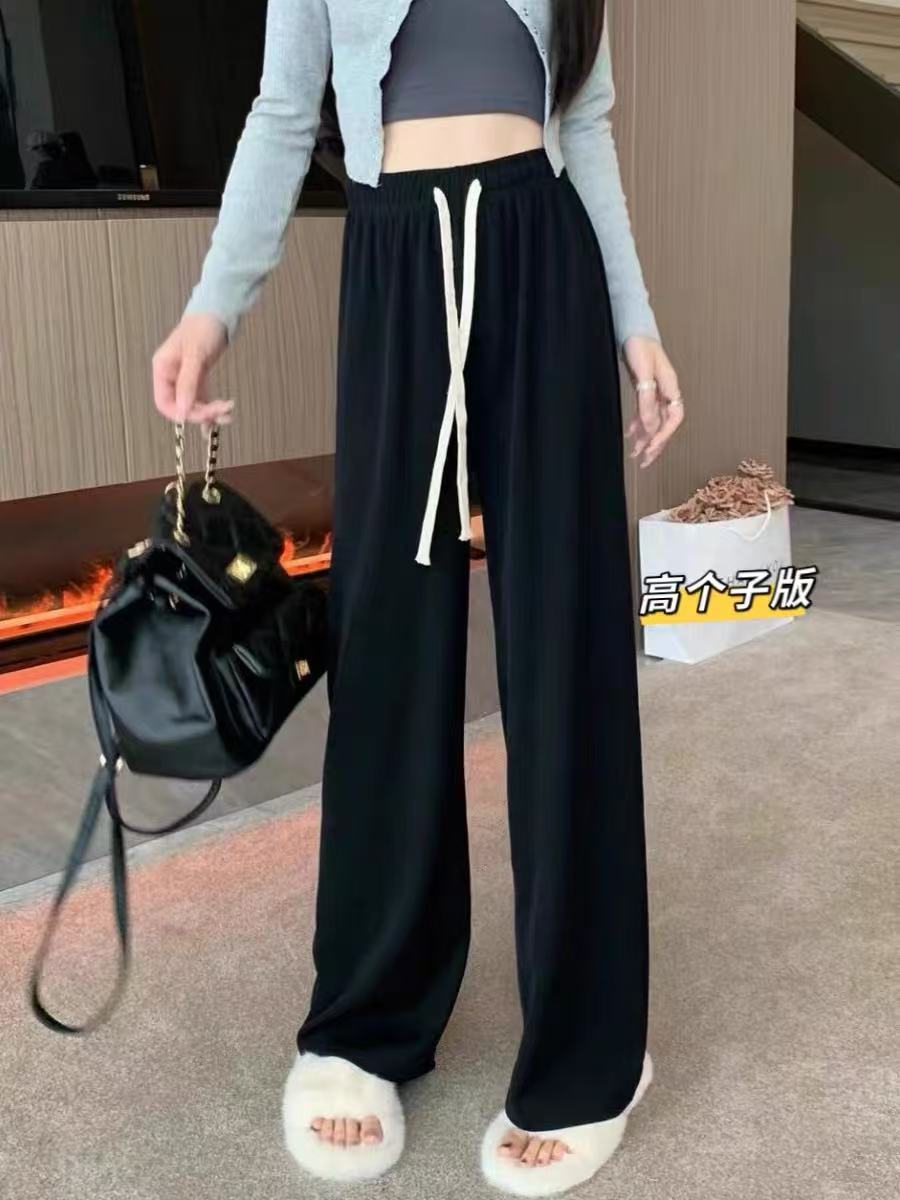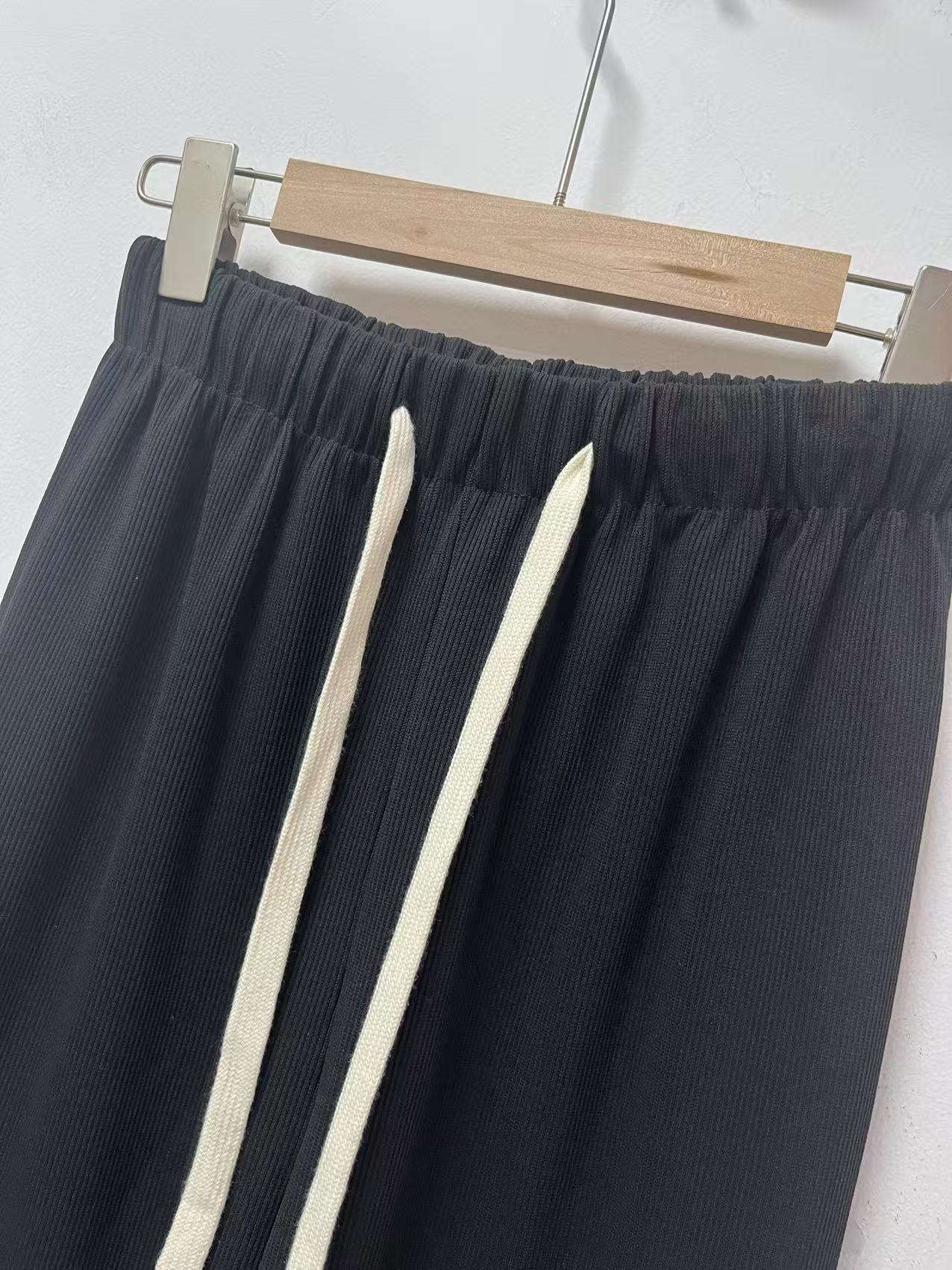 7.30秒杀~NO退【超值特卖】黑色细纹松紧腰直筒裤休闲裤-喜出