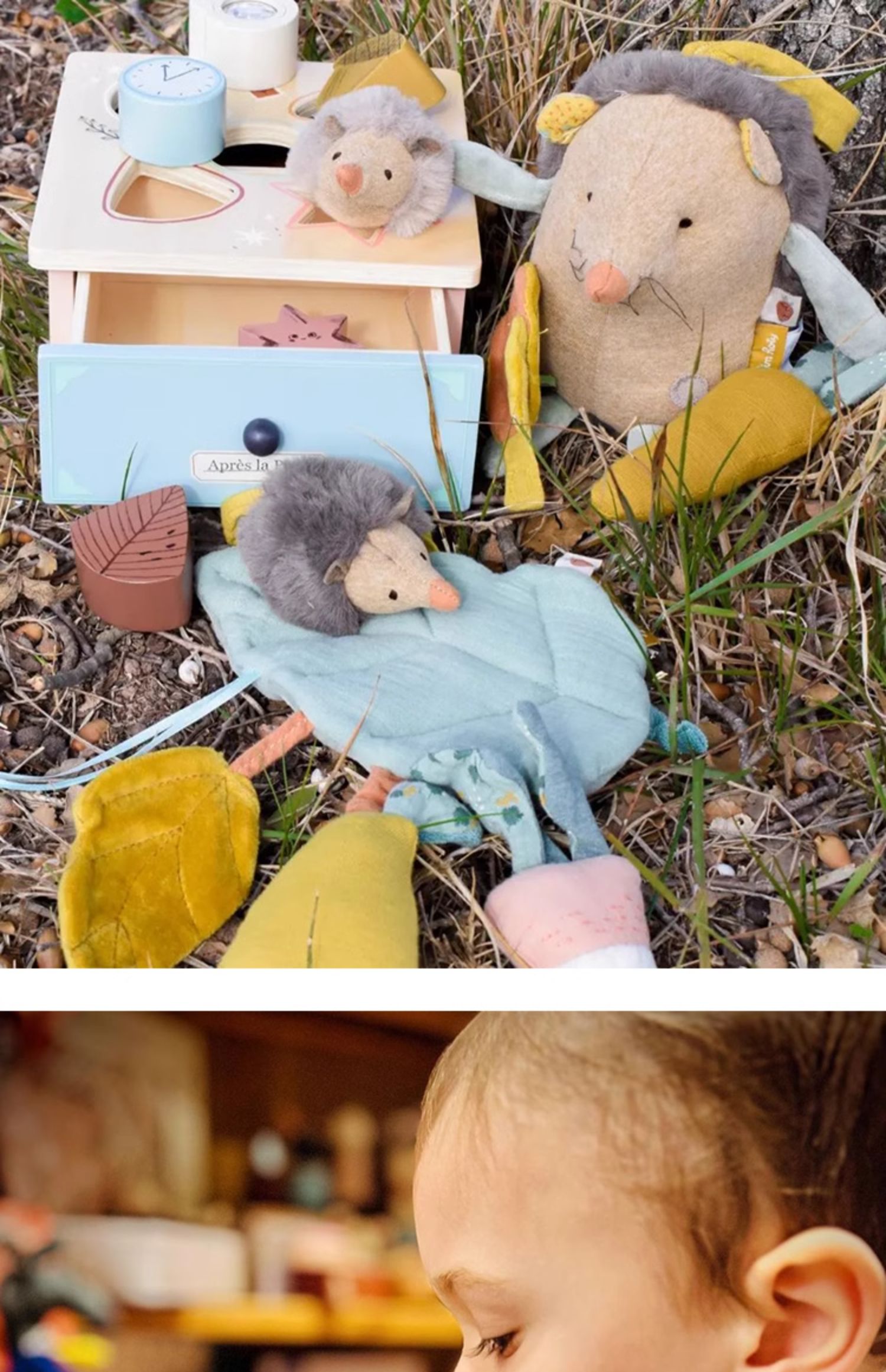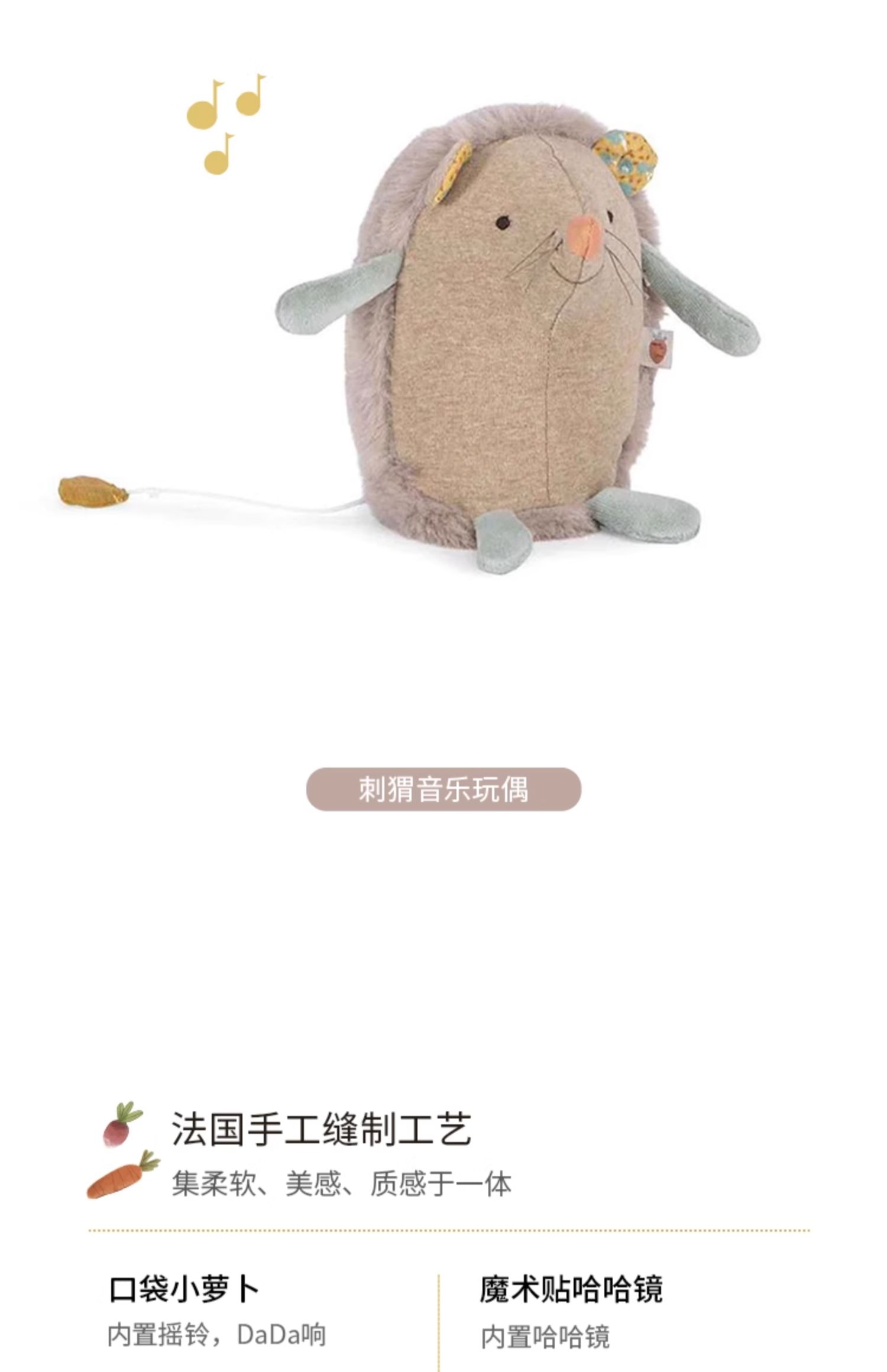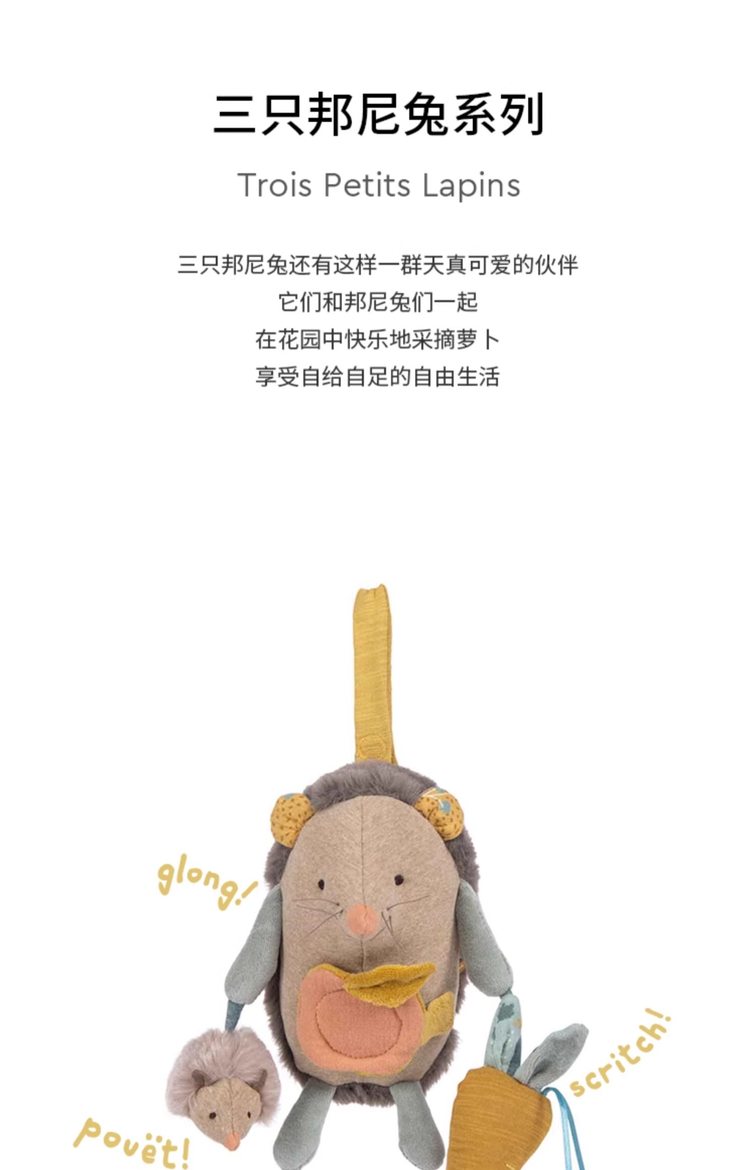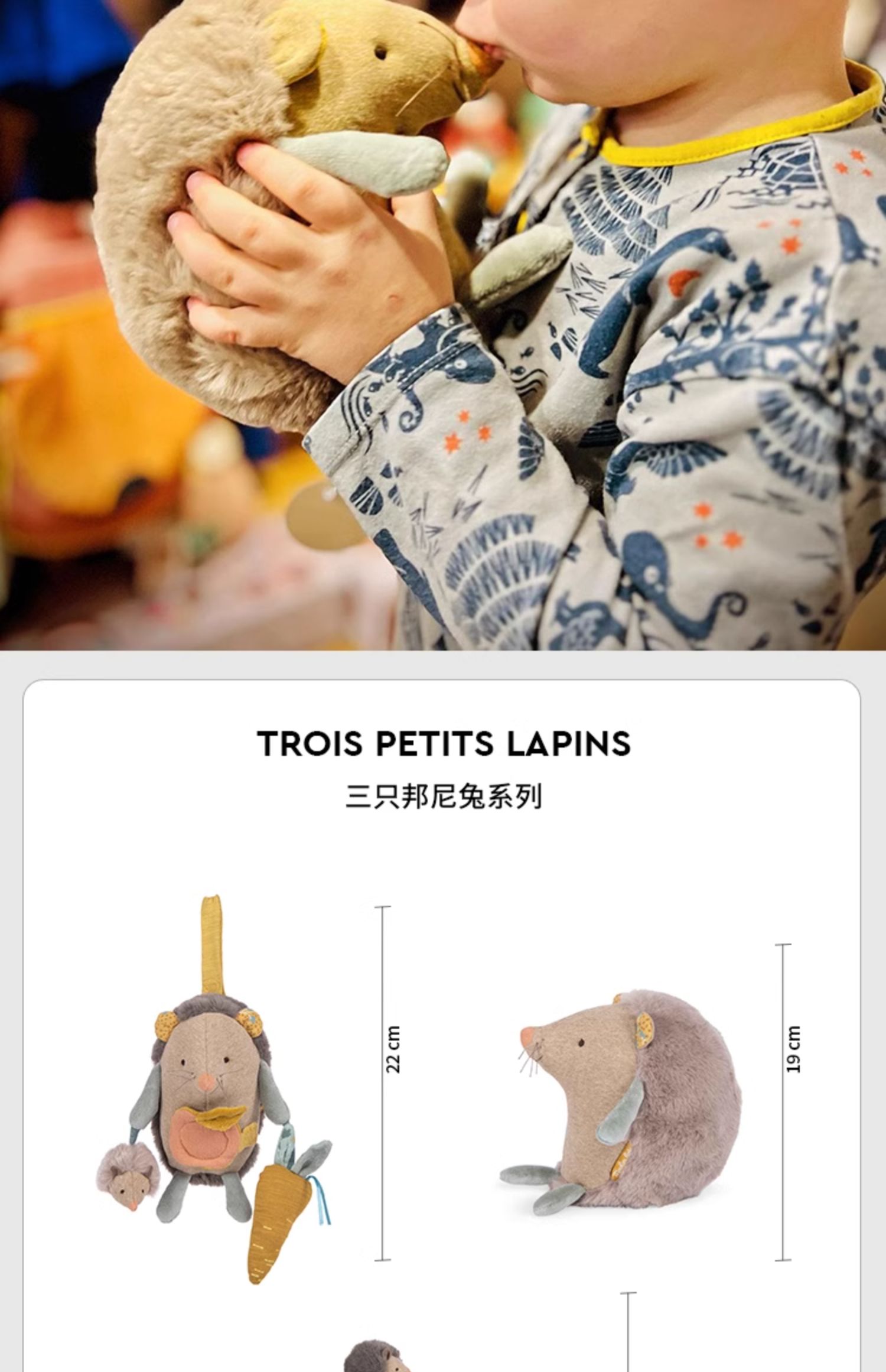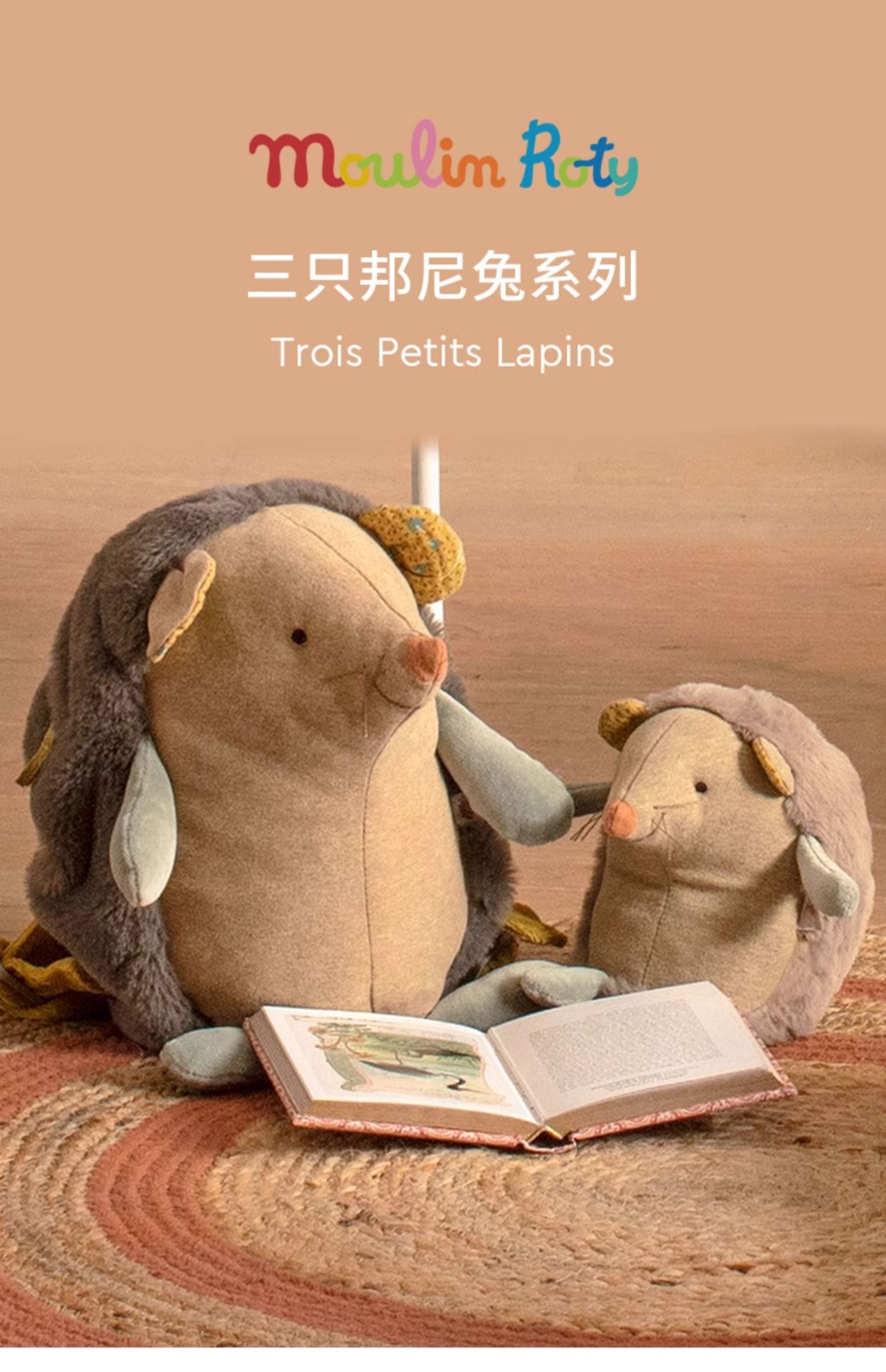 法国moulinroty三只邦尼兔系列灰/ 棕色刺猬音樂玩偶 22 厘米