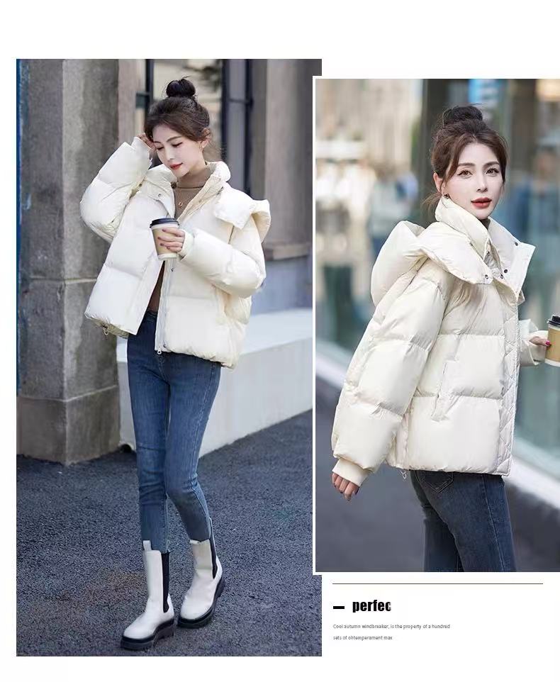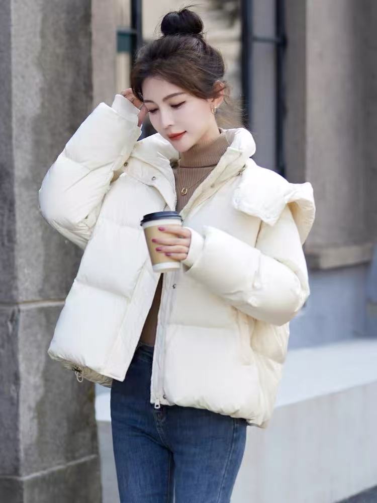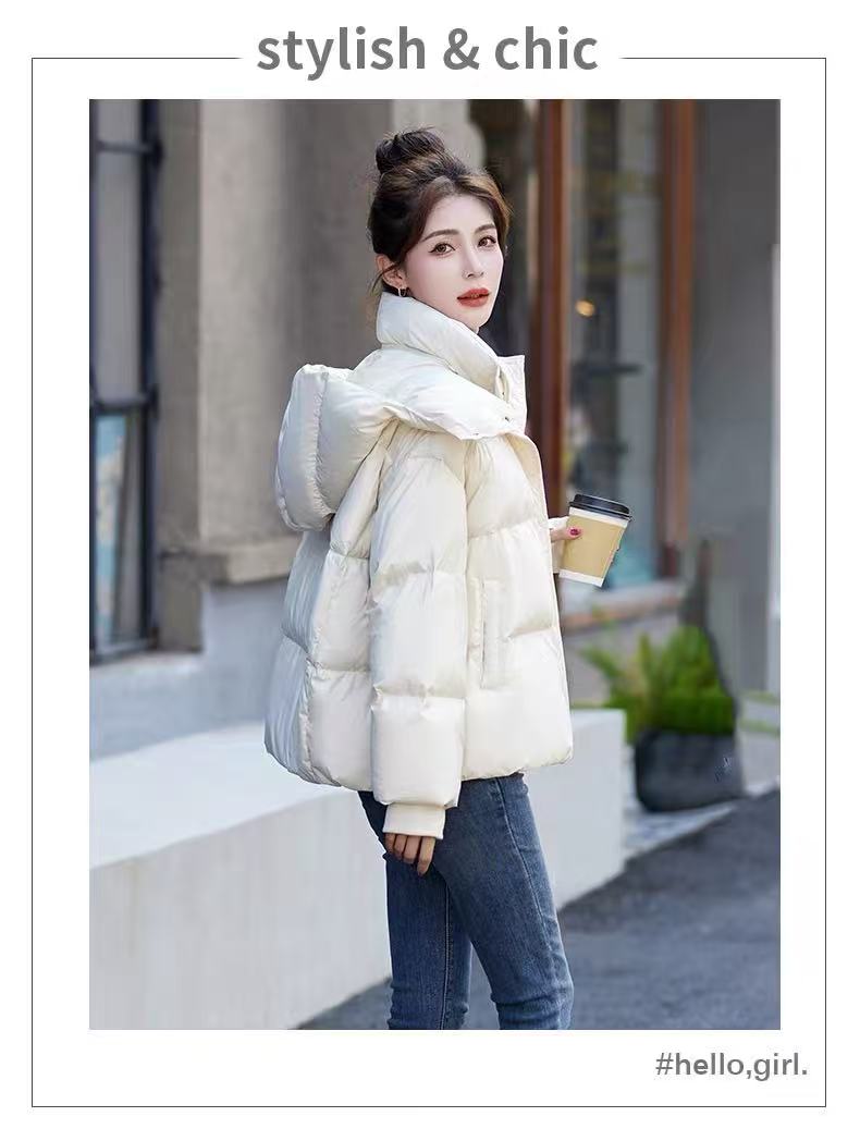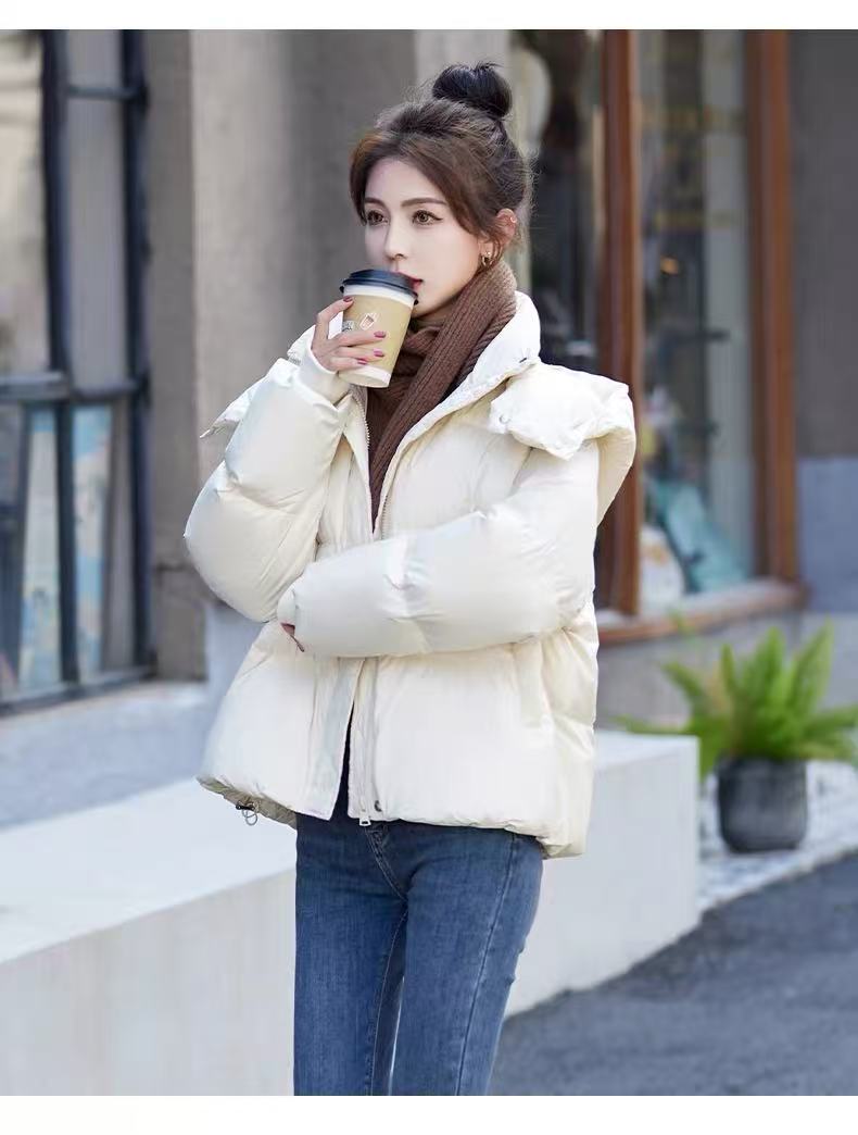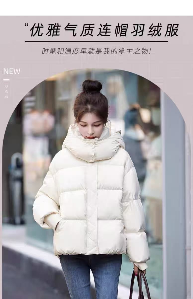 155g蓬松保暖【羽绒服】韩系连帽绗缝爆款蓬松百搭短款羽绒服-喜出