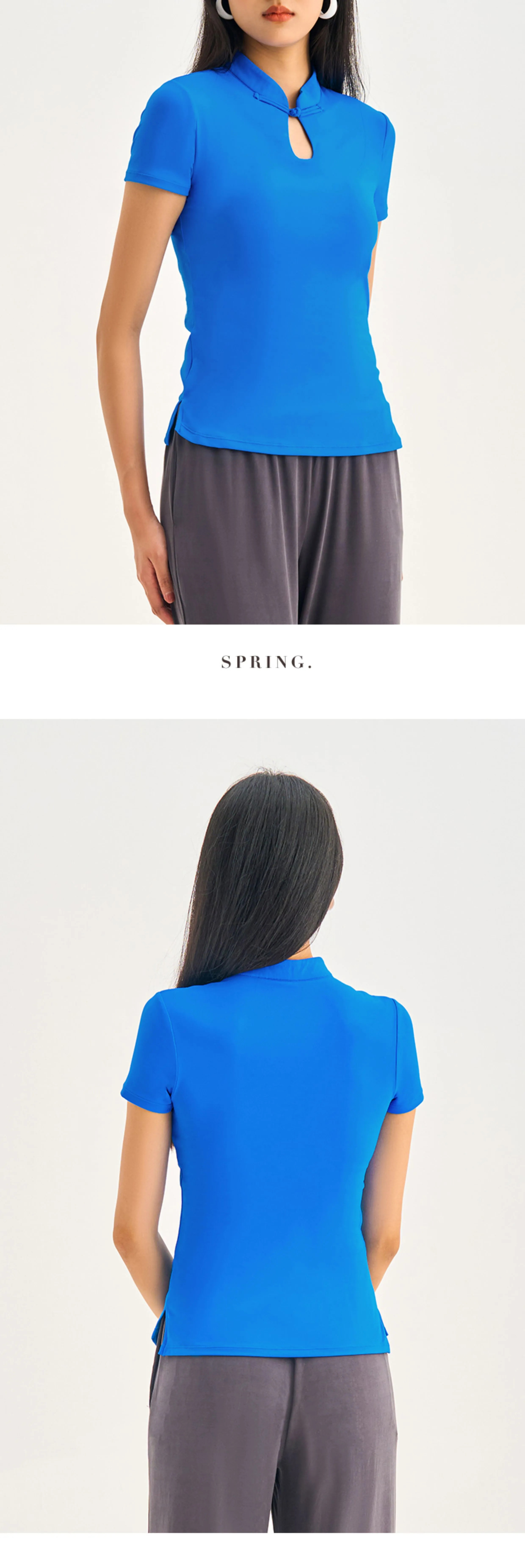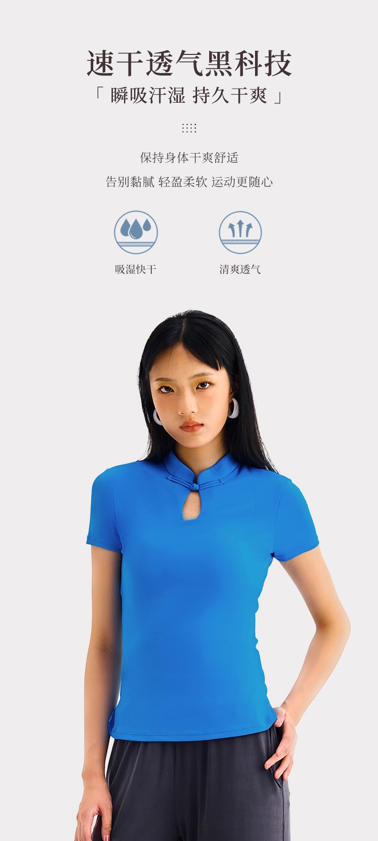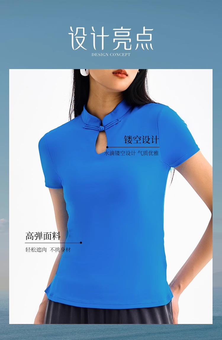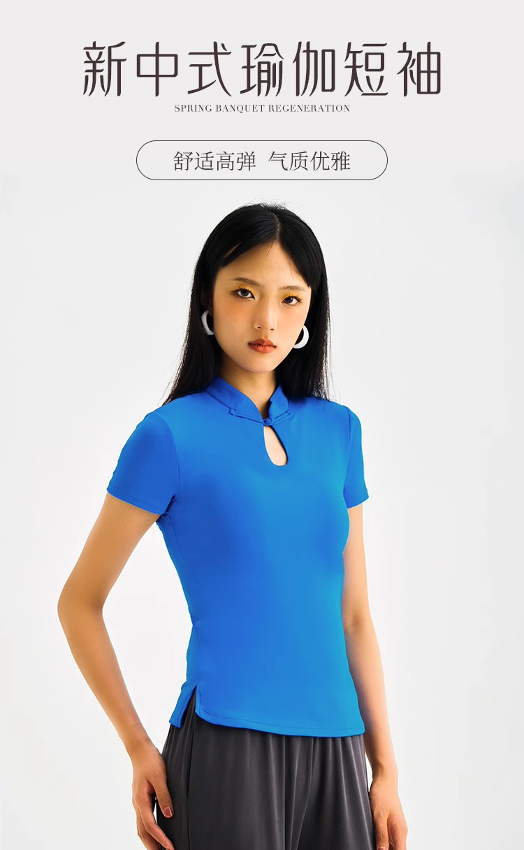 跃牌 【欲动春风】系列 女夏新中式裸感瑜伽短袖带胸垫国风盘扣紧身透气健身T恤运动上衣42242