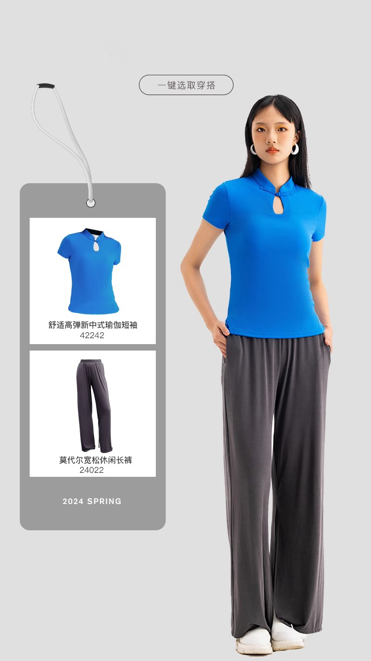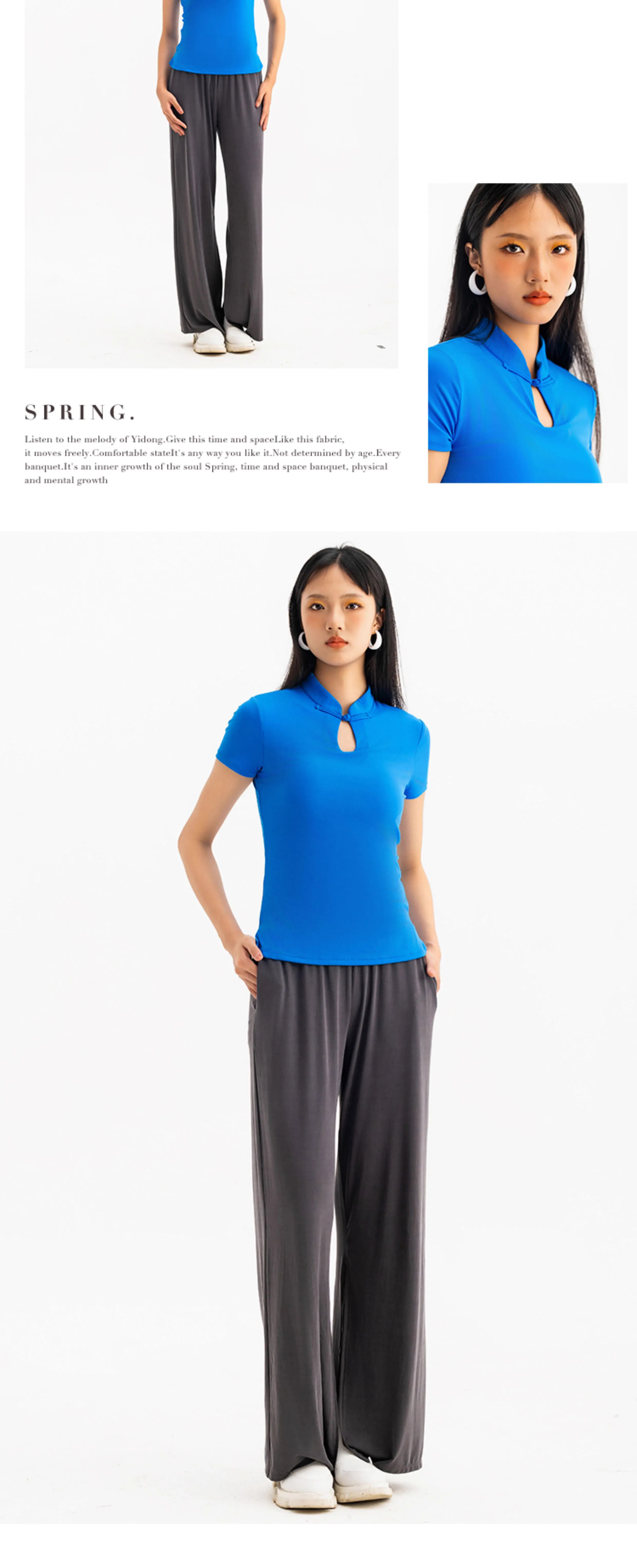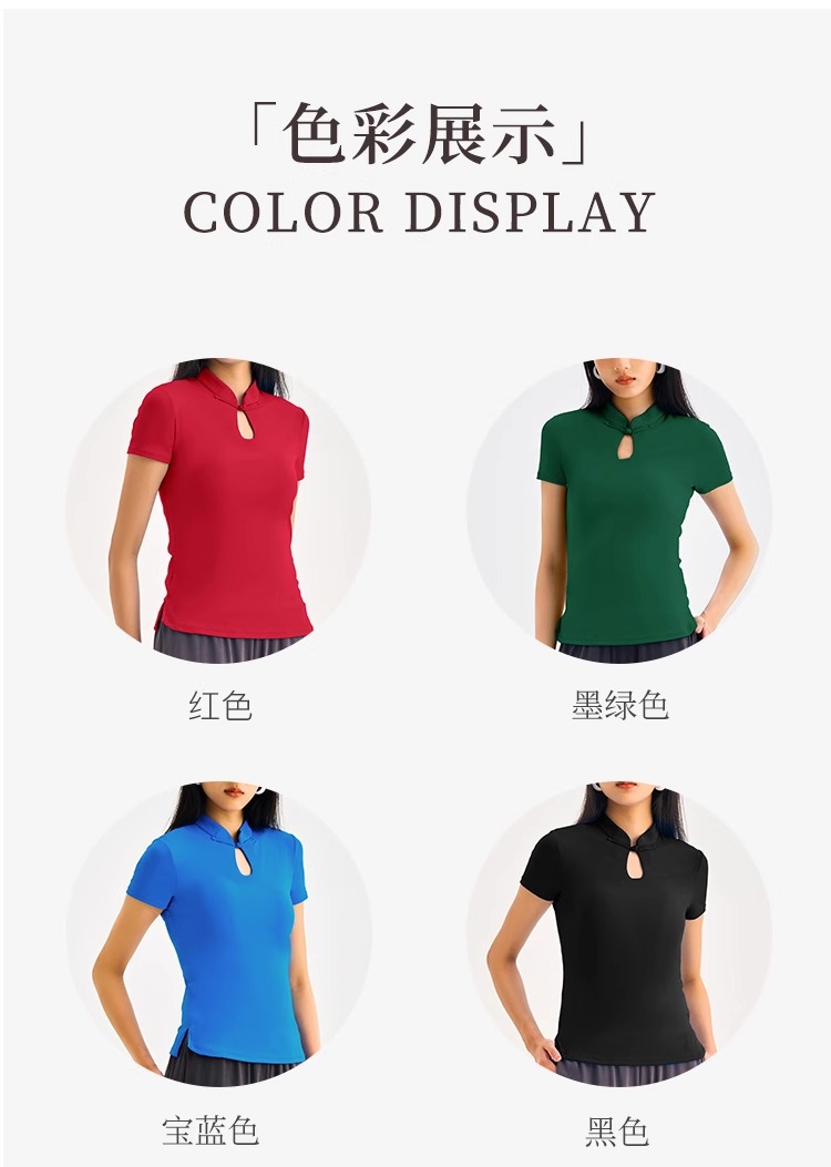 跃牌 【欲动春风】系列 女夏新中式裸感瑜伽短袖带胸垫国风盘扣紧身透气健身T恤运动上衣42242