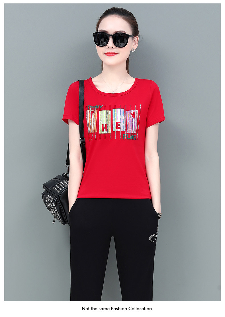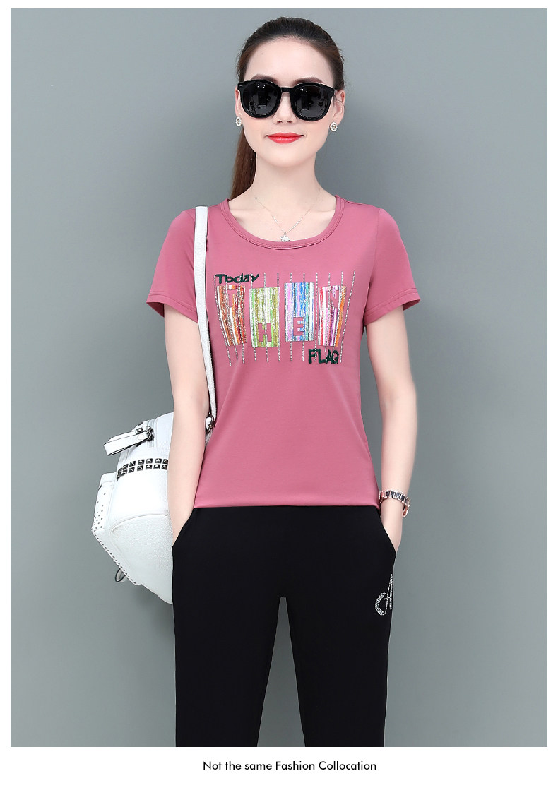 LYJ-圆领印花袖大码百搭休闲两件套☆