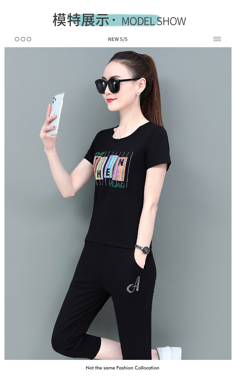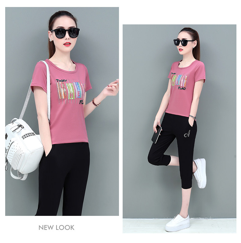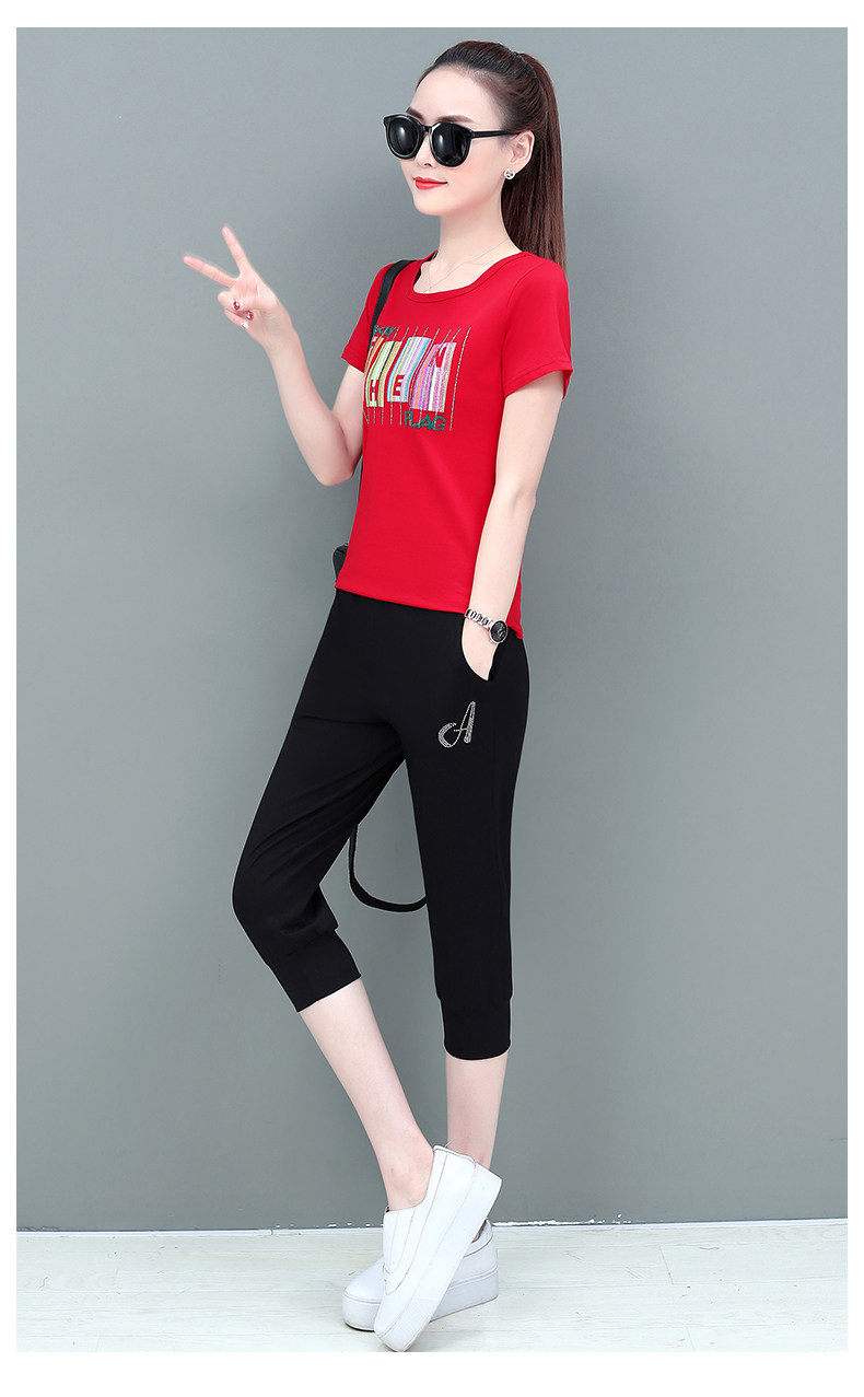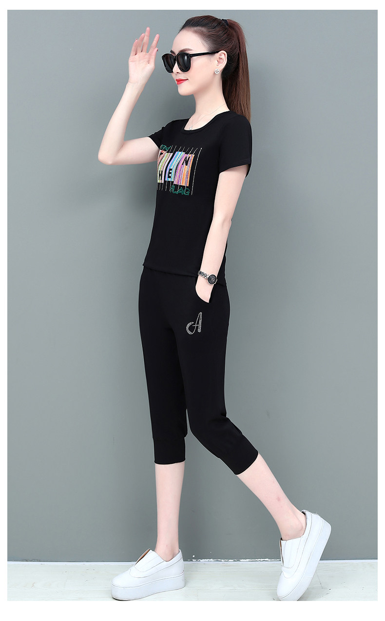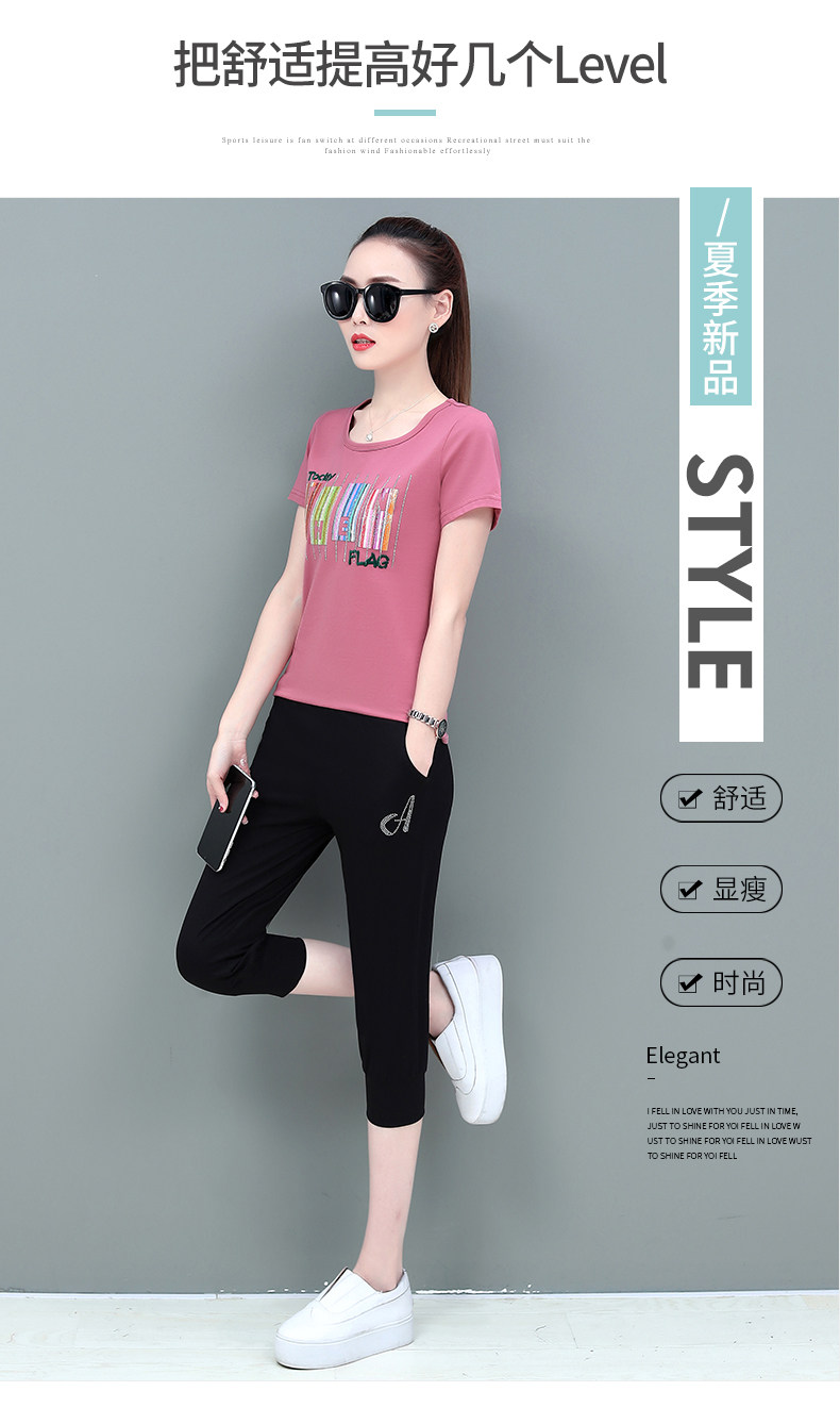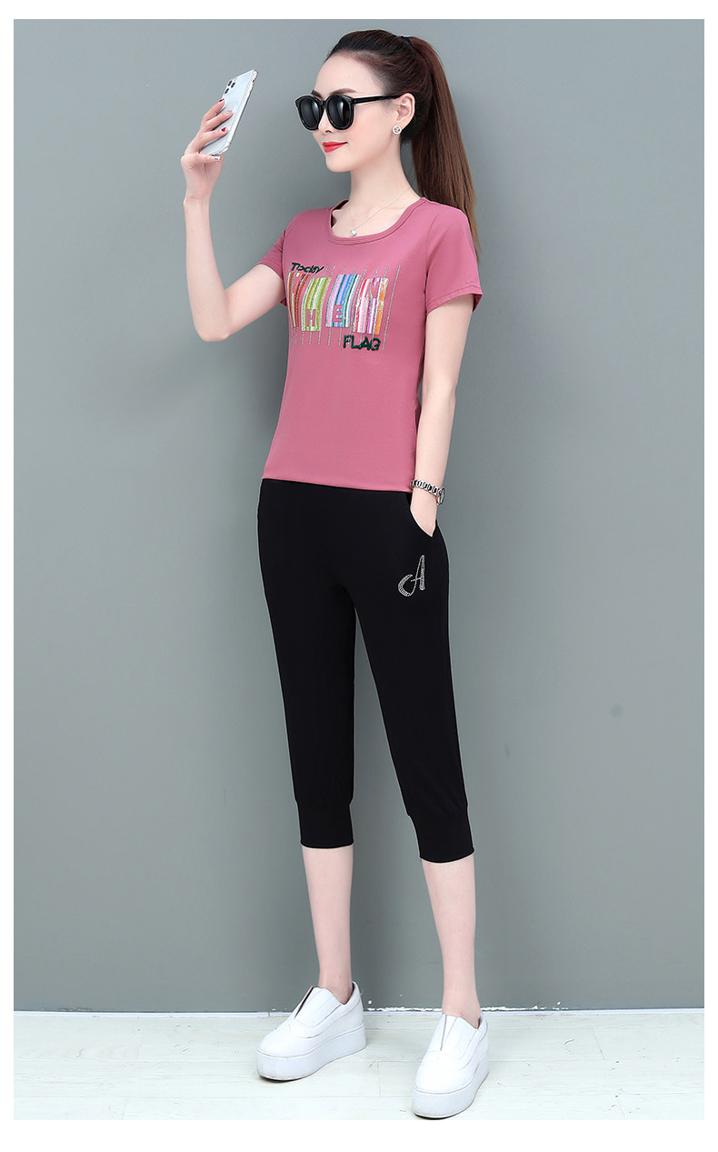 SP-1528605夏季纯棉圆领运动七分裤两件套休闲服