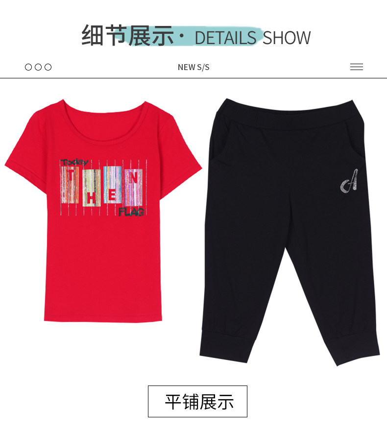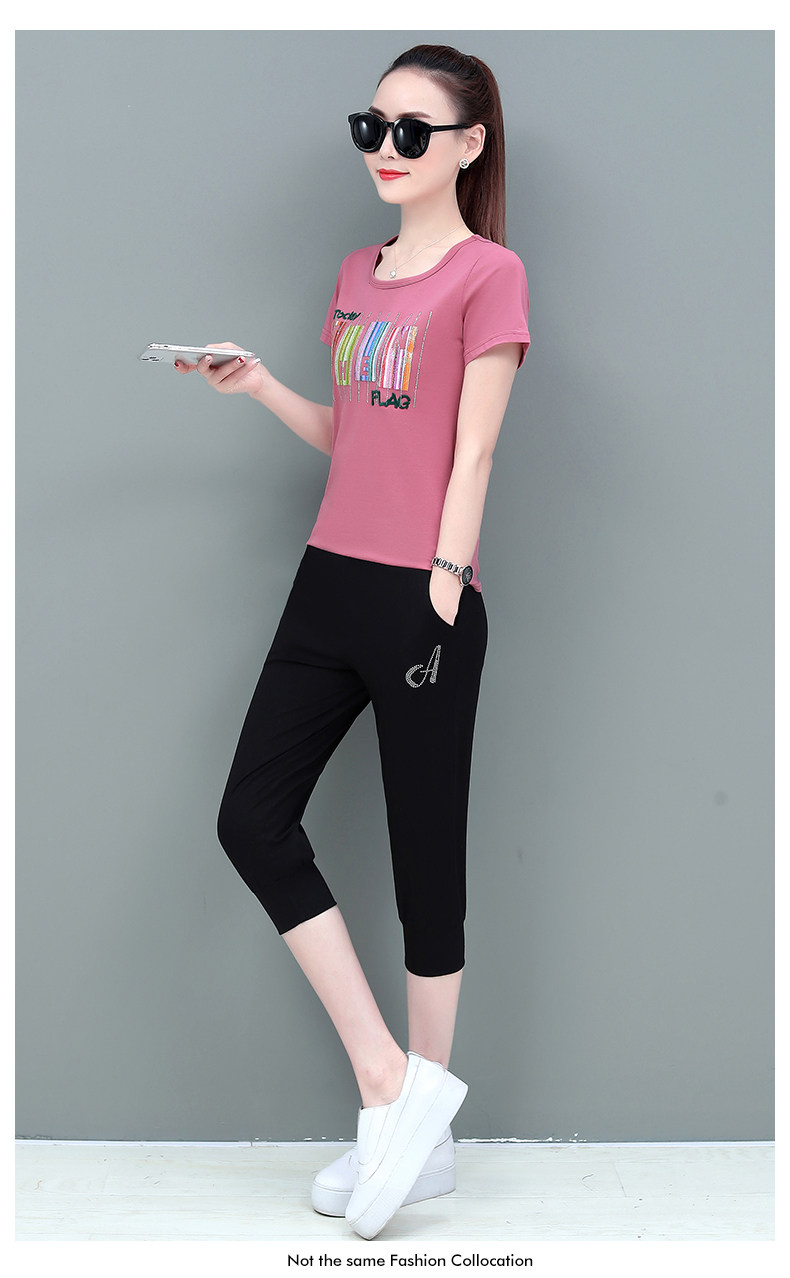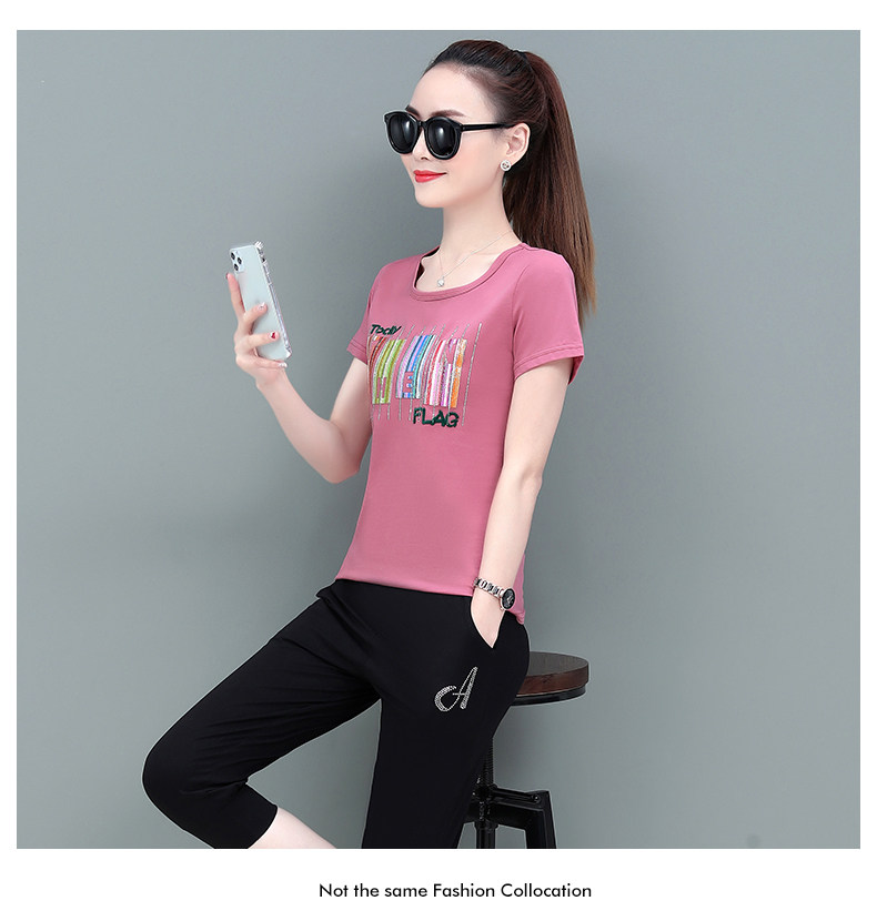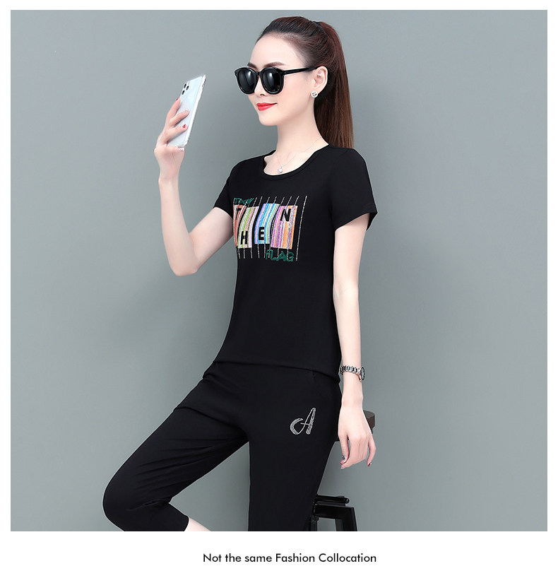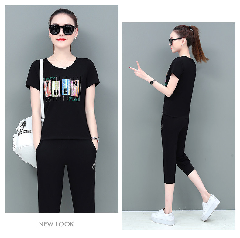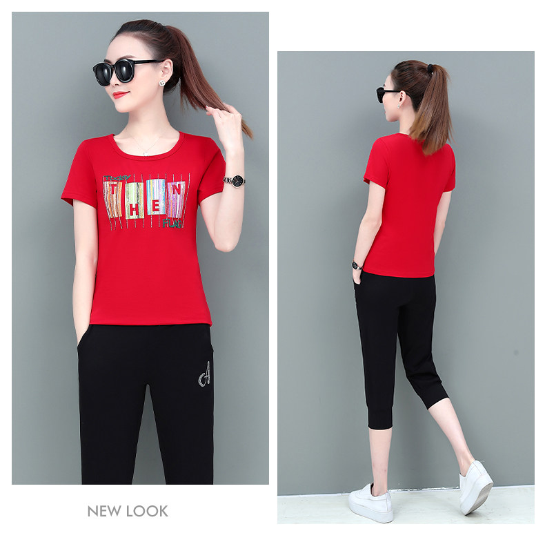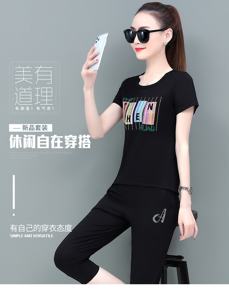 SP-1528605夏季纯棉圆领运动七分裤两件套休闲服