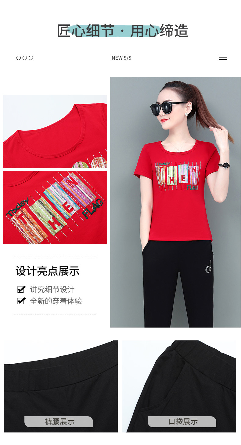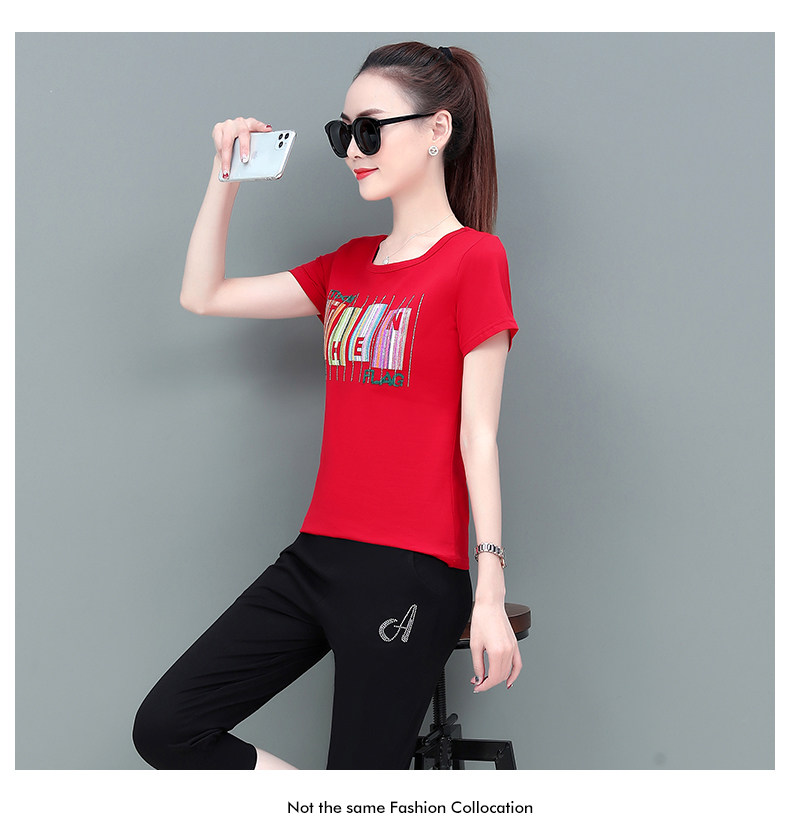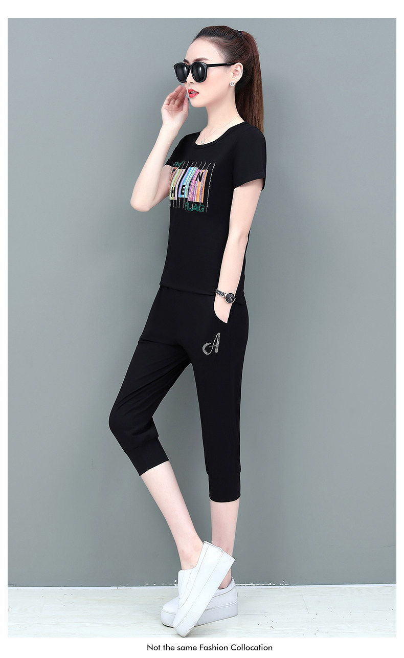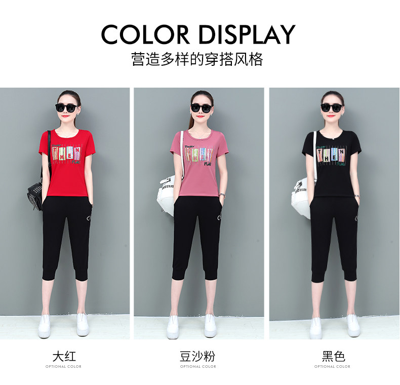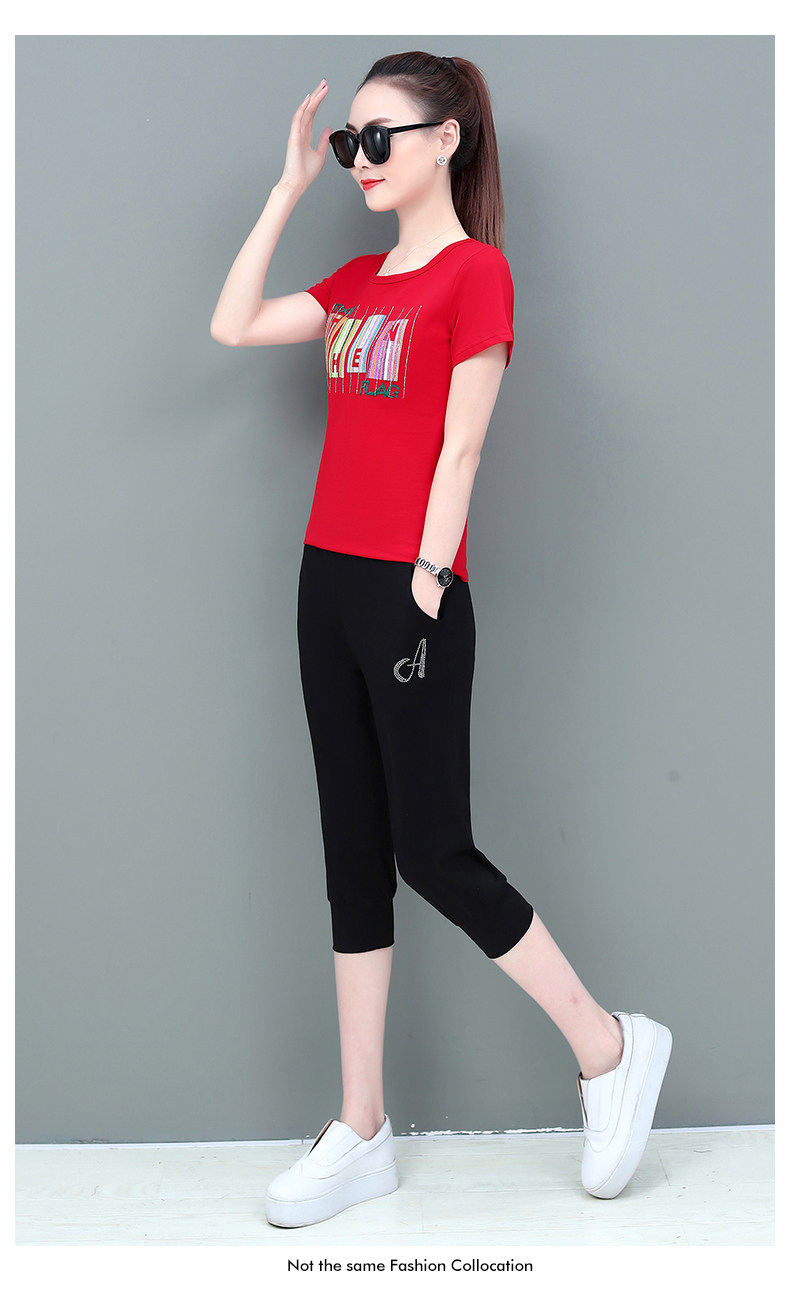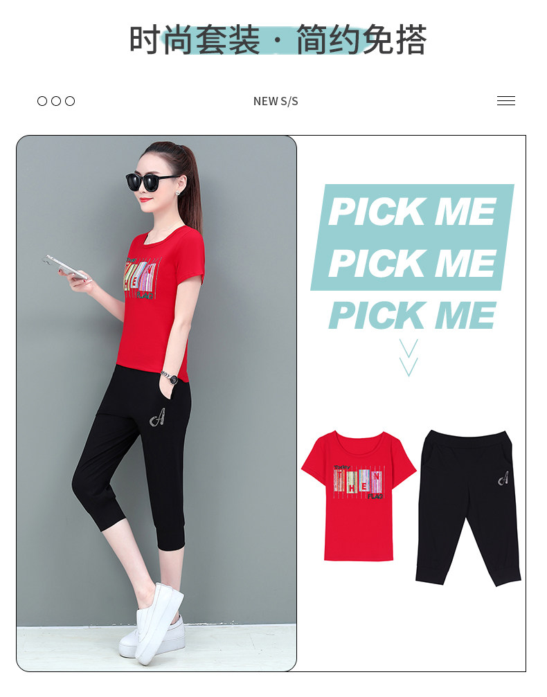SP-1528605夏季纯棉圆领运动七分裤两件套休闲服