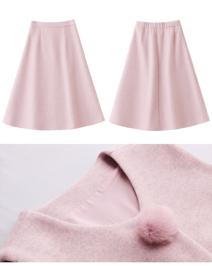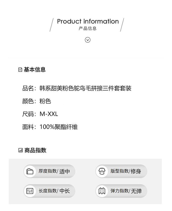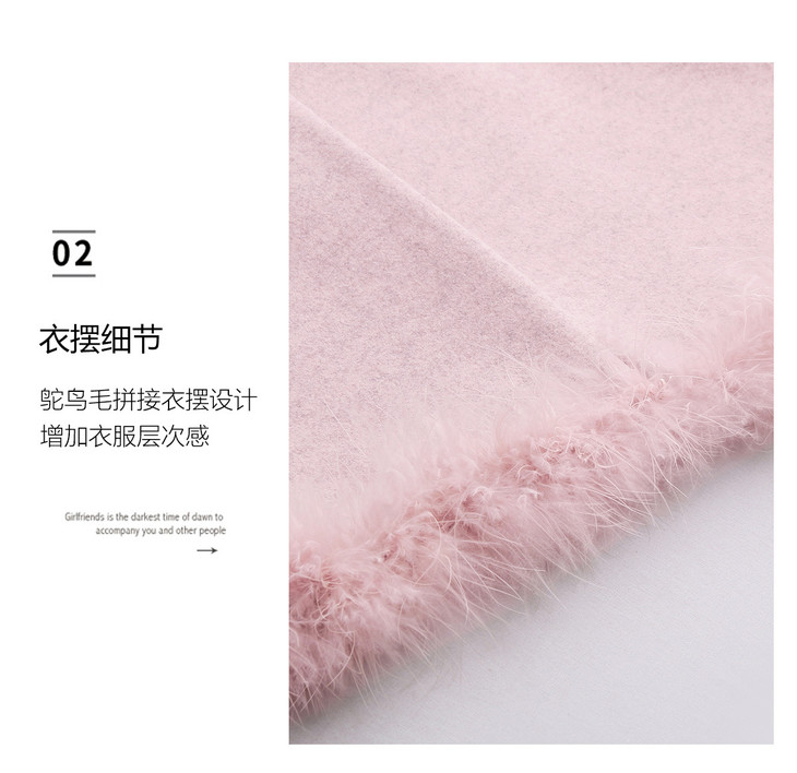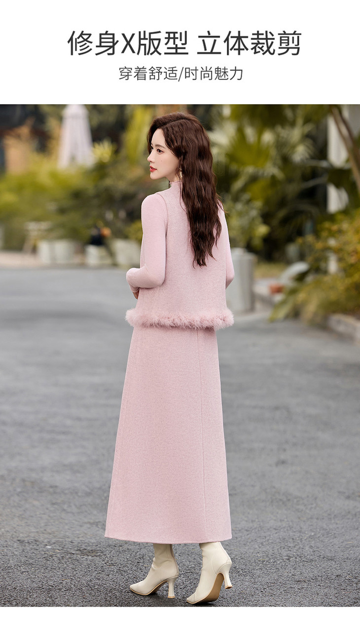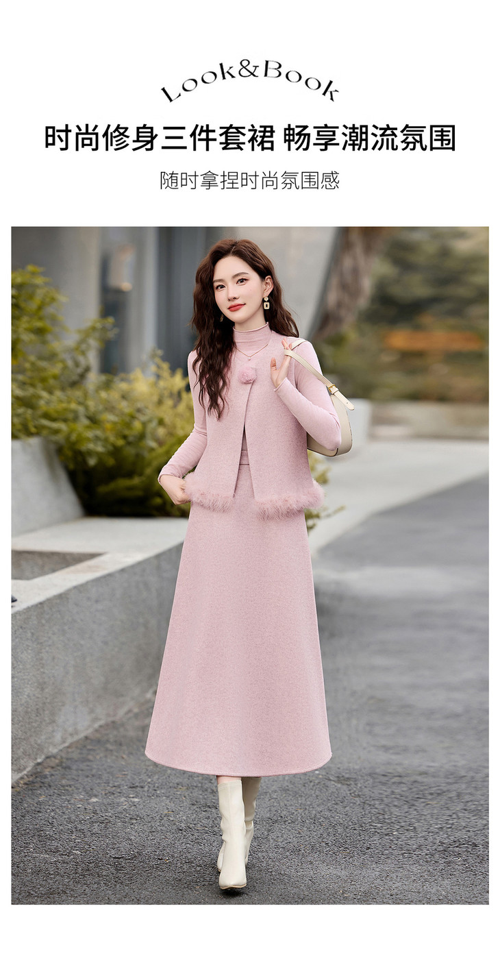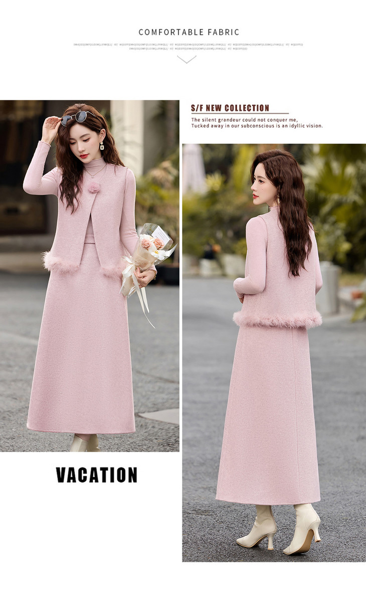 韩系粉色鸵鸟毛拼接马甲,内搭半身裙三件套HR-XXM113 商品图4