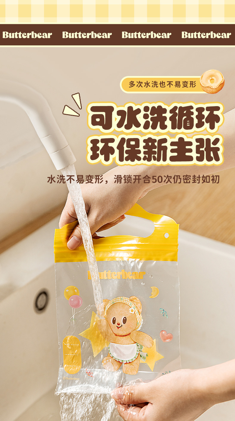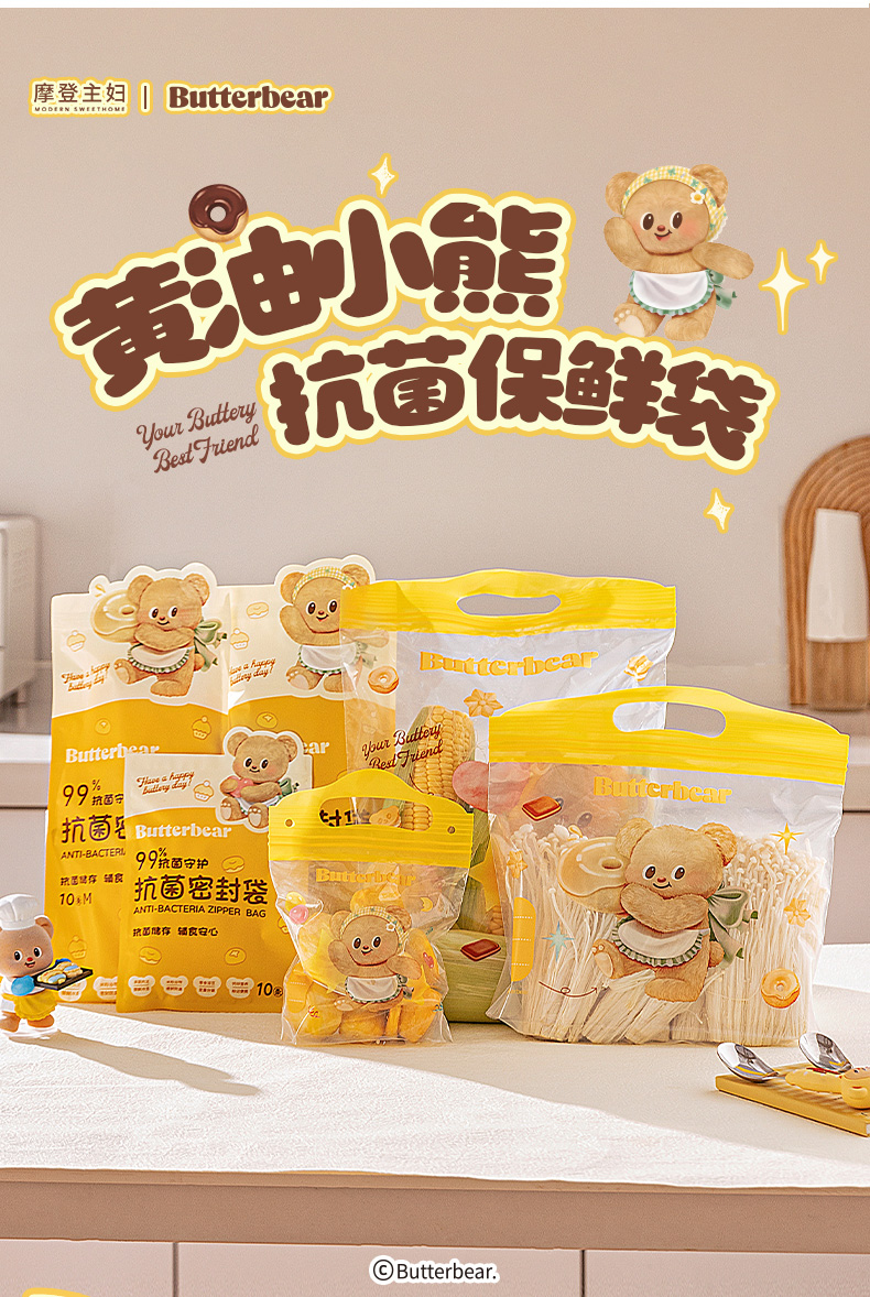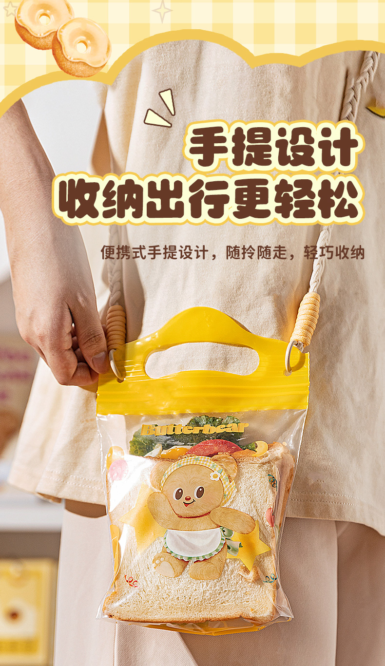 摩登主妇&黄油小熊 手提密封袋食品级保鲜袋早餐袋零食分装袋