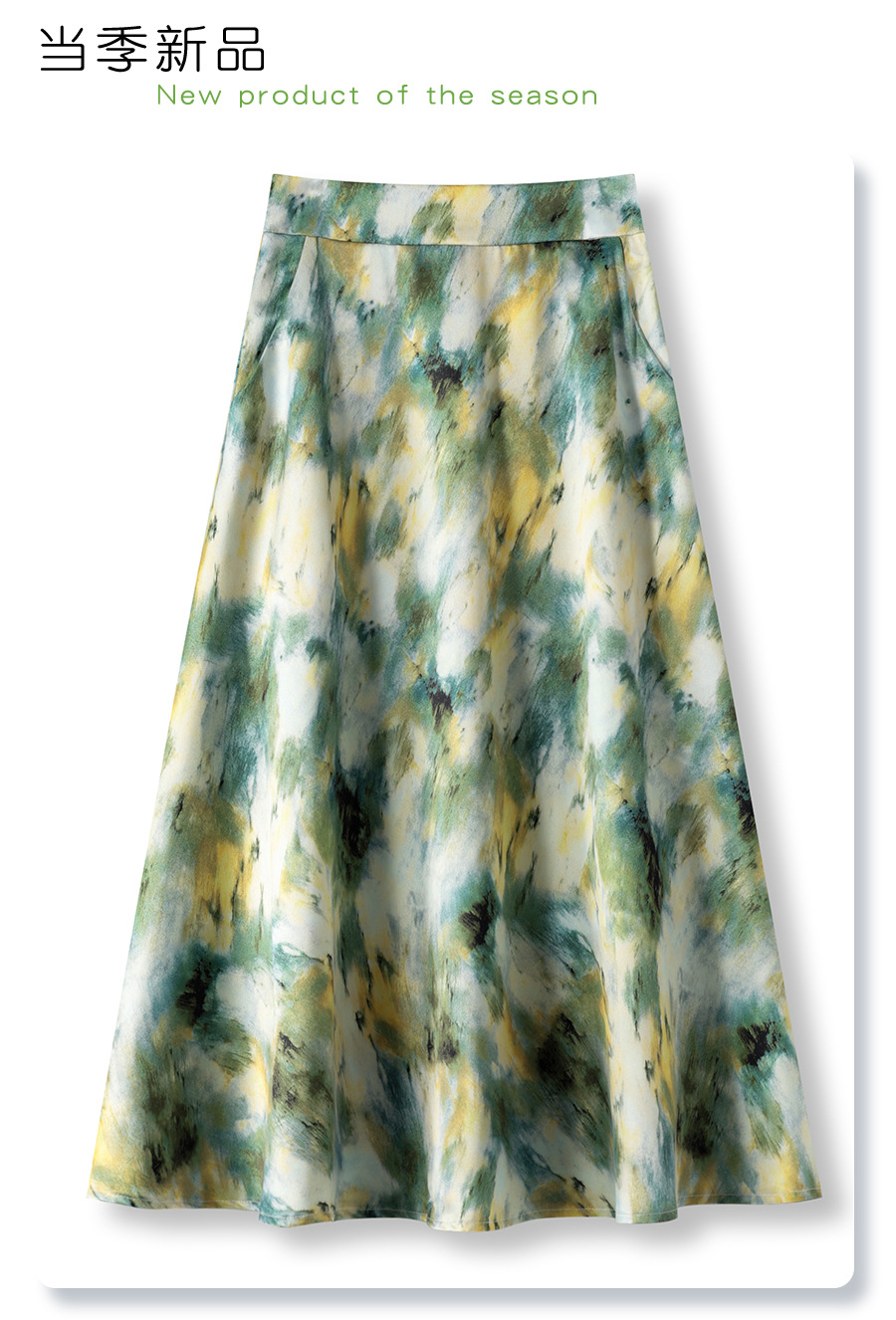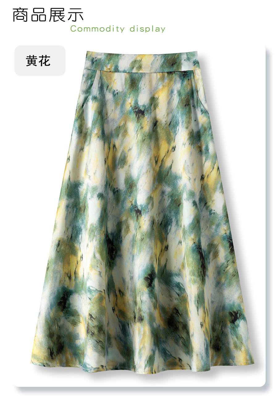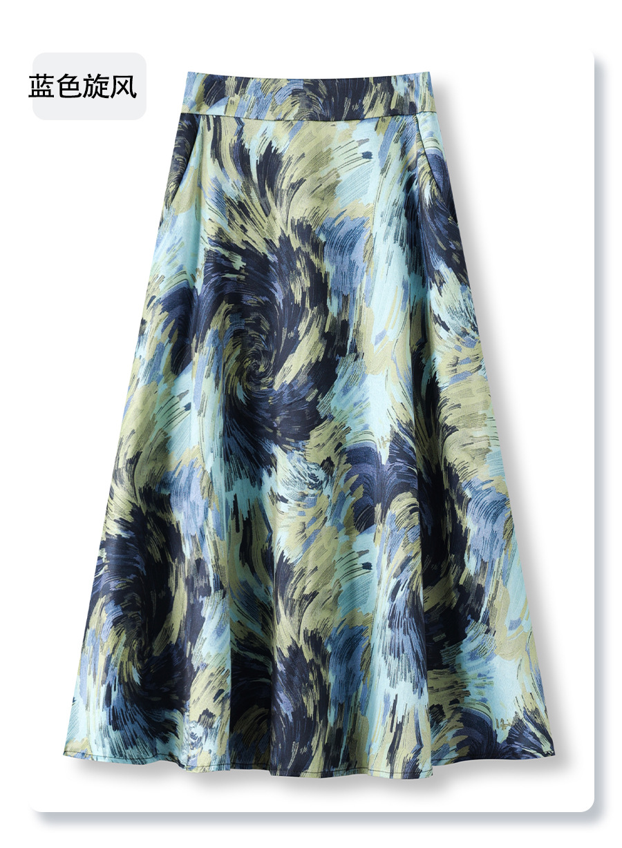 丁摩 蓝色印花半身裙女春夏季薄款中长款高级感气质A字大摆伞裙5ZF-53371