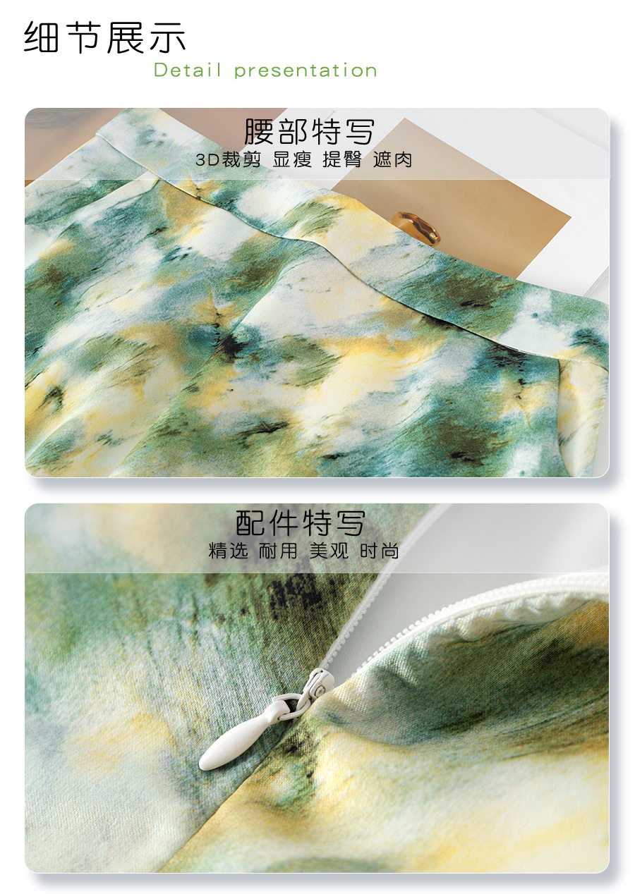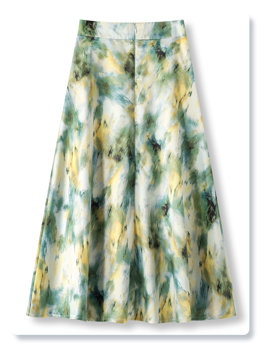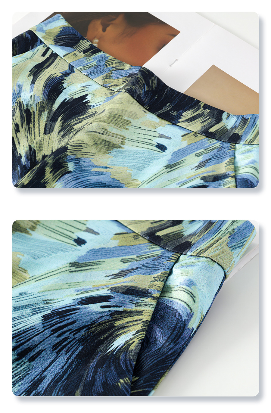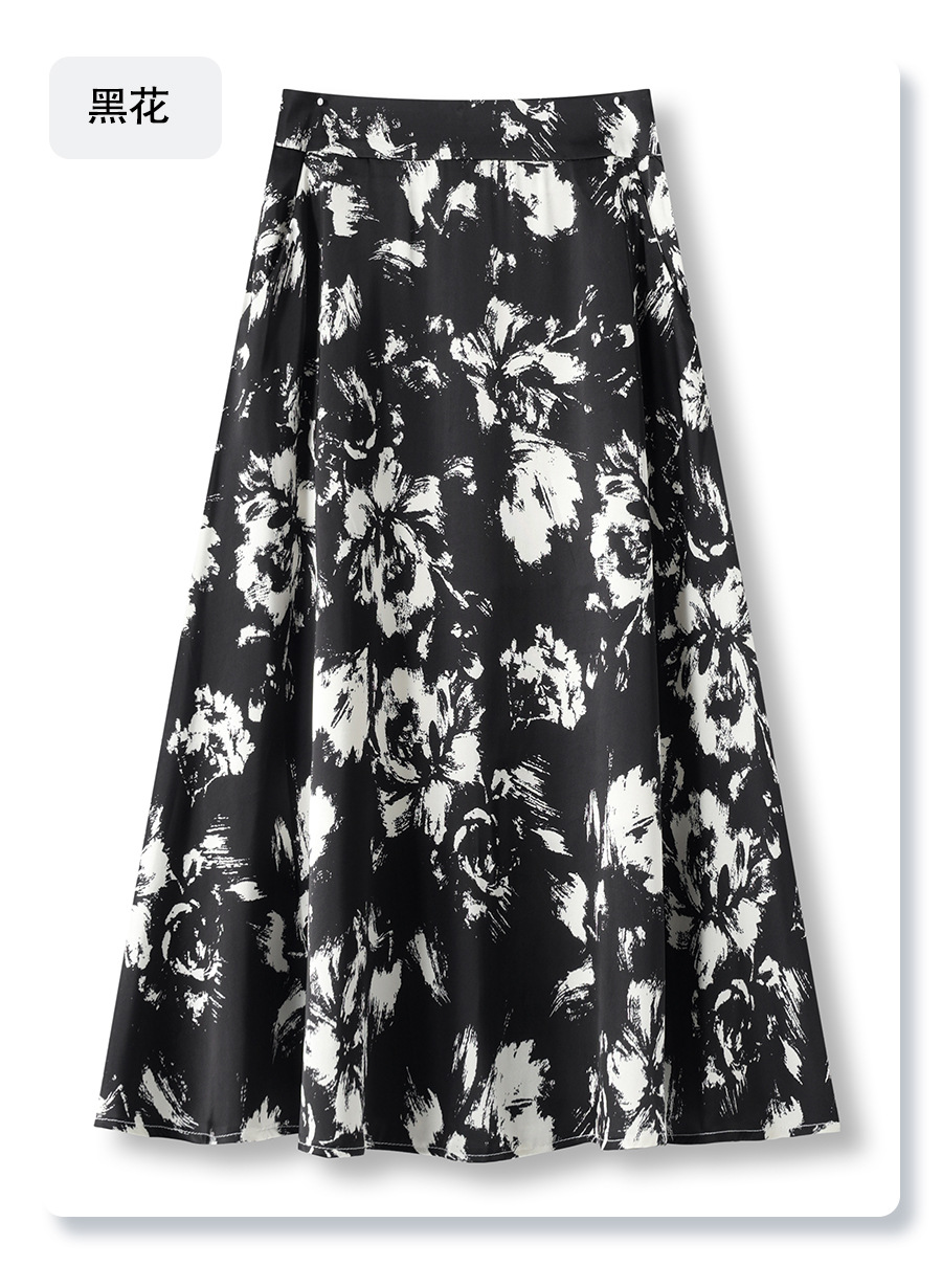 丁摩 蓝色印花半身裙女春夏季薄款中长款高级感气质A字大摆伞裙5ZF-53371